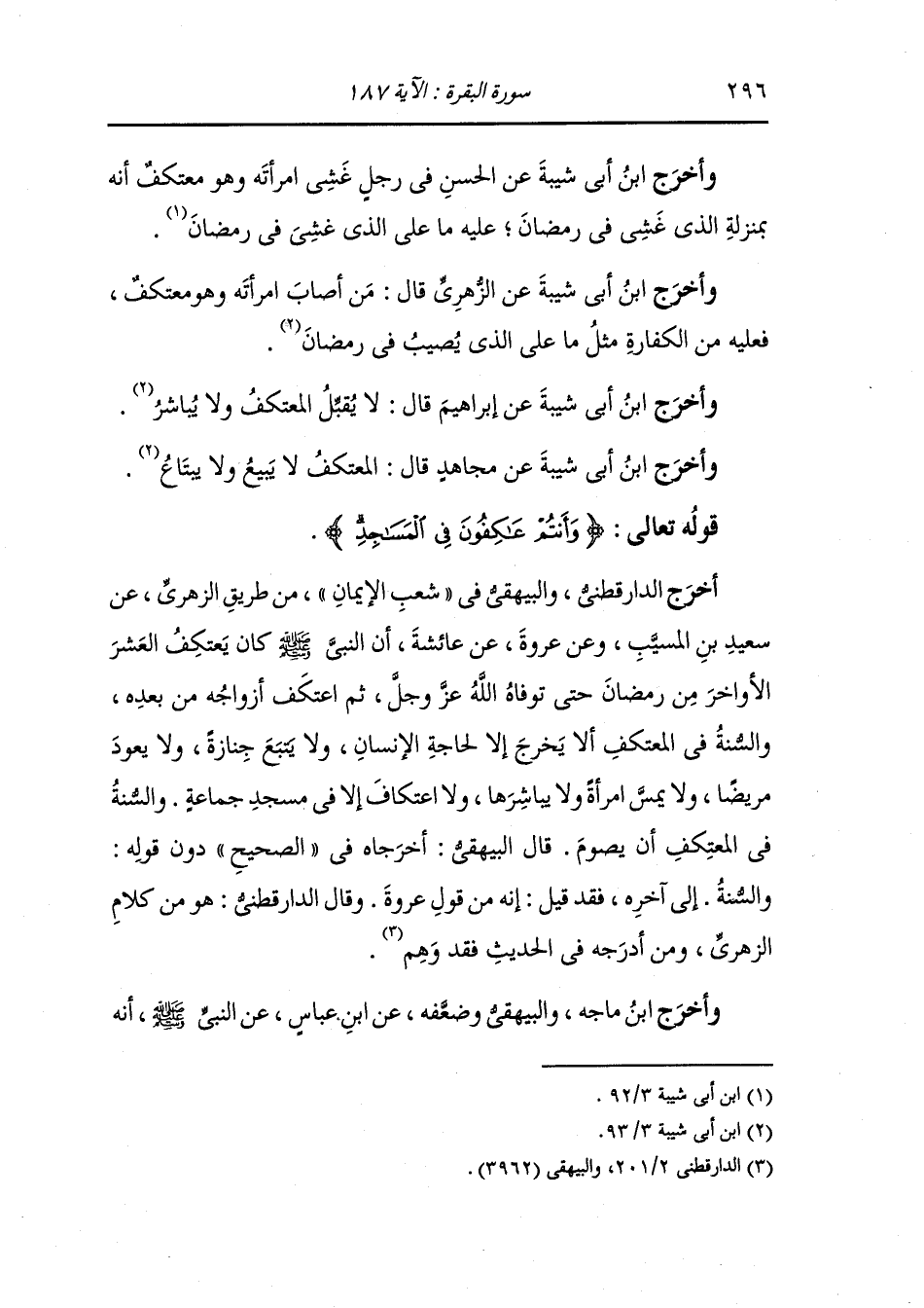 وأخرج ابن أبي شيبة عن الحسن في رجل غشي امرأته وهو معتكف أنه بمنزلة الذي غشي في رمضان عليه على الذي في رمضان.