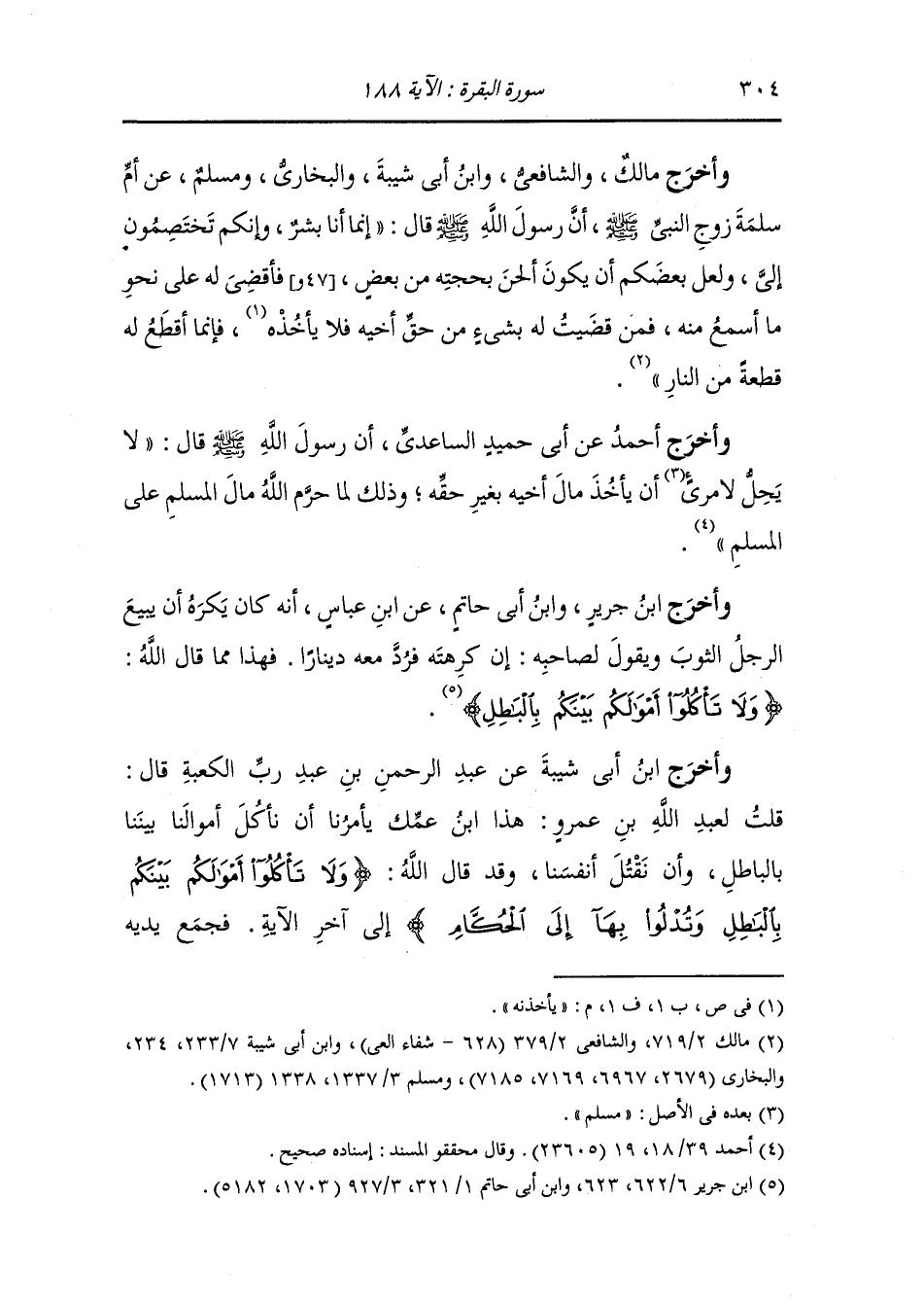 وأخرج أحمد عن أبي حميد الساعدي أن رسول الله صلى الله عليه وسلم قال : لا يحل لإمرى ء أن يأخذ مال أخيه بغير حقه وذلك لما حرم الله مال المسلم على المسلم.