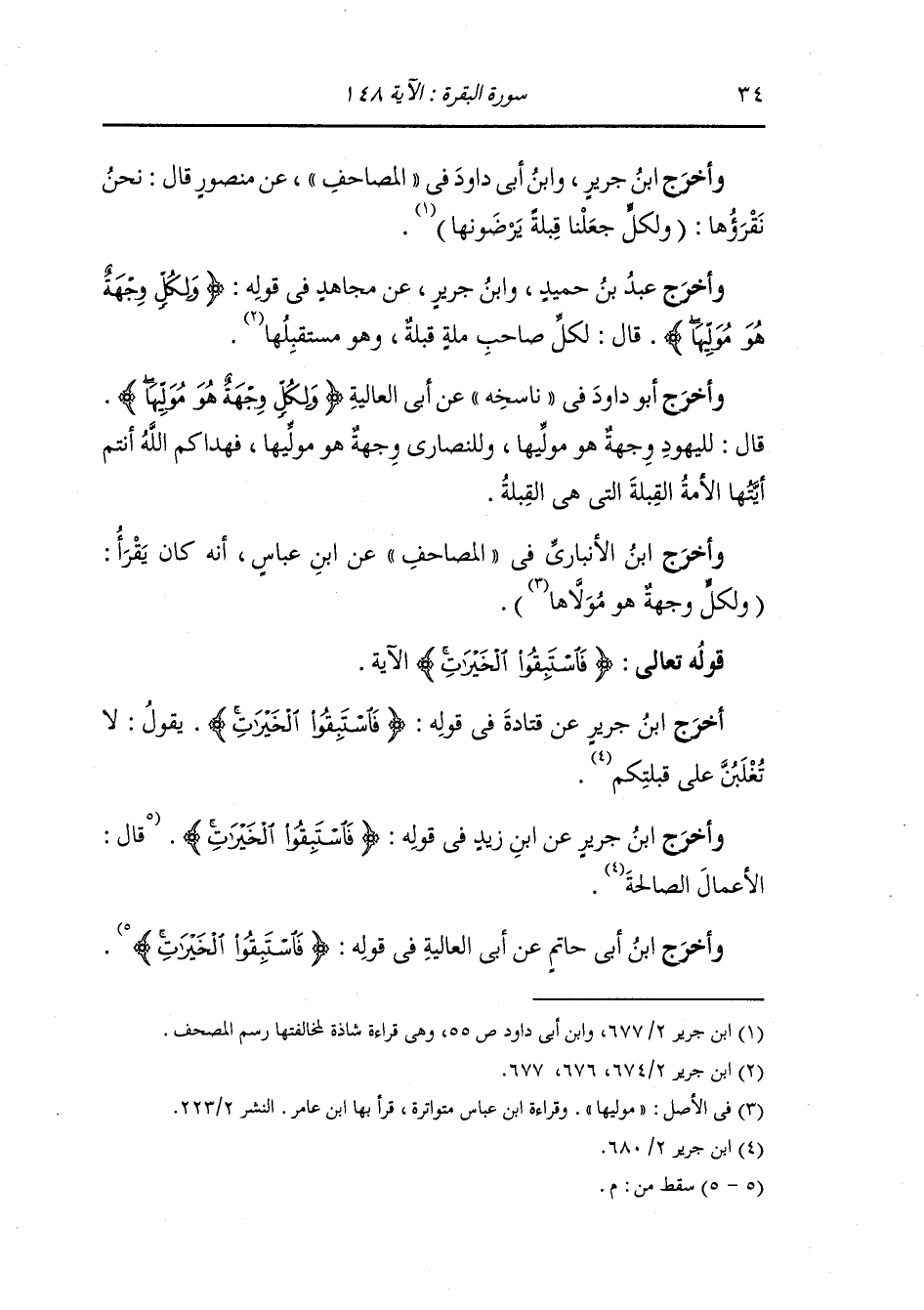 وأخرج أبو داود في ناسخه عن قتادة {ولكل وجهة هو موليها} قال : هي صلاتهم إلى بيت المقدس وصلاتهم إلى الكعبة
