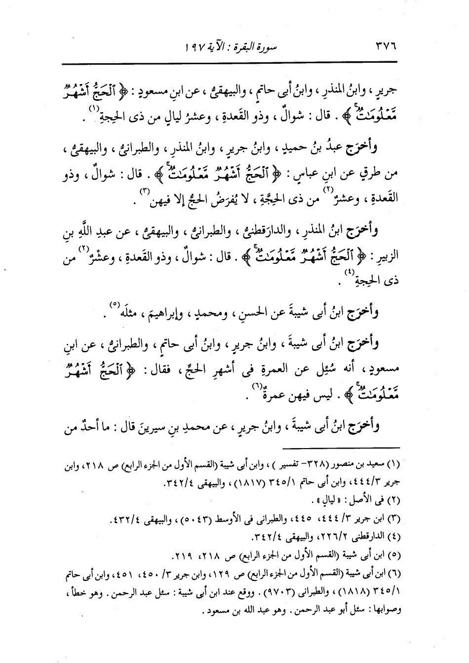 وأخرج ابن أبي شيبة ، وَابن جَرِير ، وَابن أبي حاتم والطبراني عن ابن مسعود ، أنه سئل عن العمرة في أشهر الحج فقال : الحج أشهر معلومات ليس فيهن عمرة.