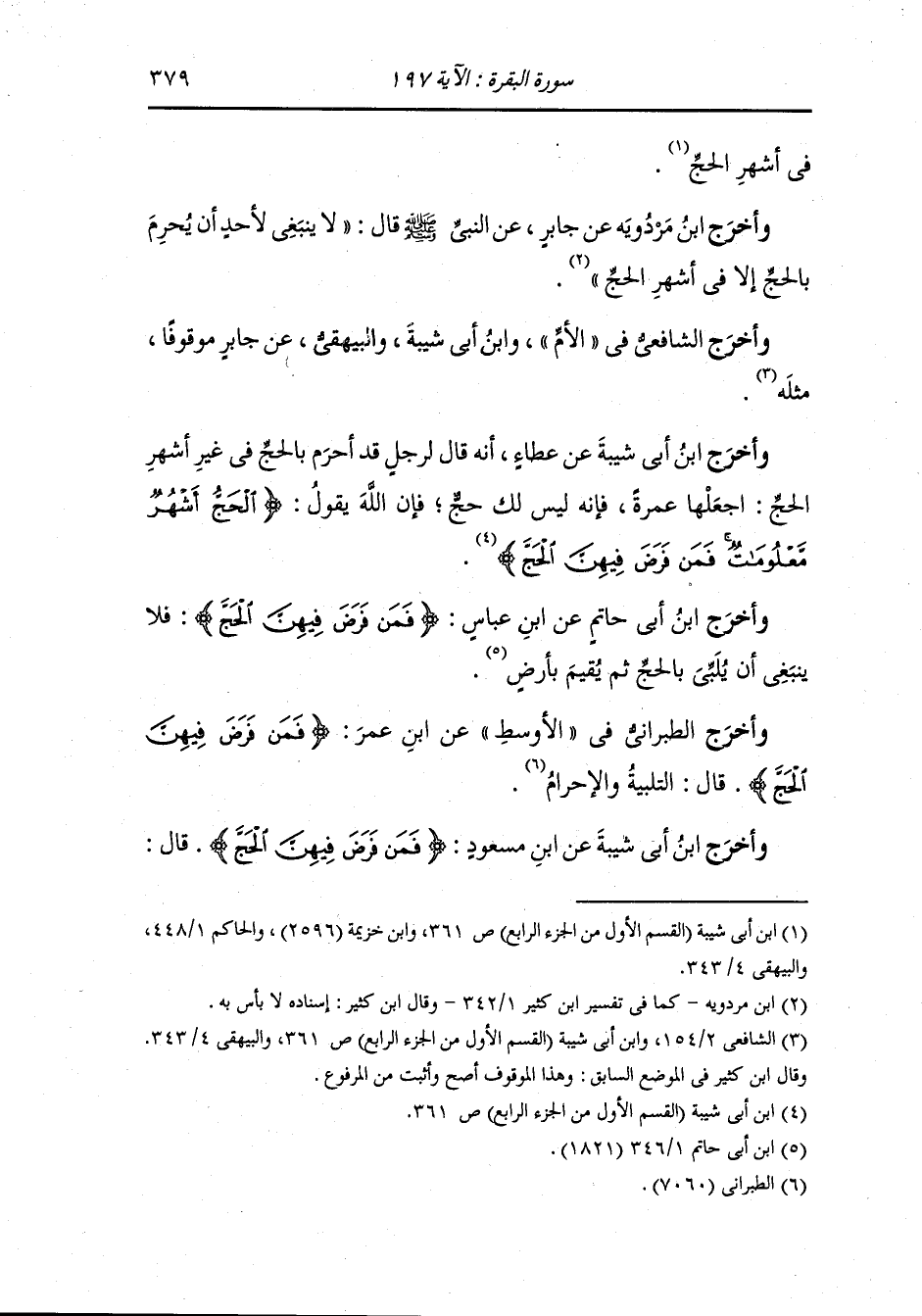 وأخرج ابن أبي شيبة عن ابن مسعود {فمن فرض فيهن الحج} قال :