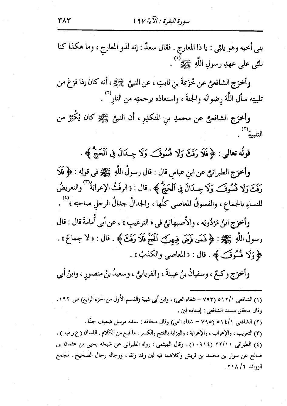 وأخرج الشافعي عن محمد بن المنكدر أن النَّبِيّ صلى الله عليه وسلم كان يكثر من التلبية ، أما قوله تعالى : {فلا رفث ولا فسوق ولا جدال في الحج}.