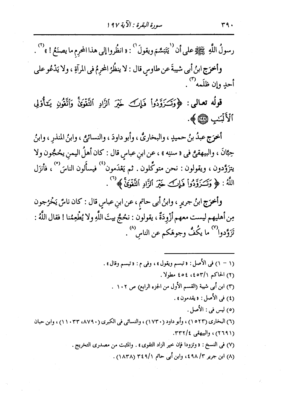 وأخرج ابن جرير ، وَابن أبي حاتم عن ابن عباس قال : كان ناس يخرجون من أهلهم ليست معهم أزوده يقولون : نحج بيت الله ولا يطعمنا ، فقال الله {وتزودوا فإن خير الزاد التقوى} ما يكف وجوهكم عن الناس