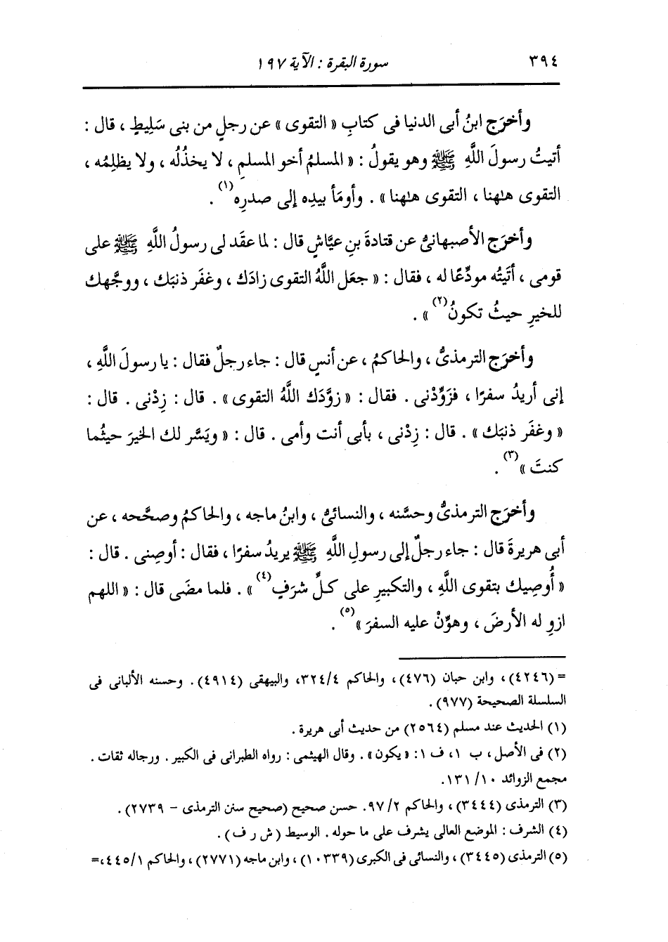 وأخرج الترمذي والحاكم عن أنس قال جاء رجل فقال : يا رسول الله إني أريد سفرا فزودني فقال : زودك الله التقوى قال : زدني ، قال : وغفر ذنبك ، قال : زدني بأبي أنت وأمي ، قال : ويسر لك الخير حيثما كنت.