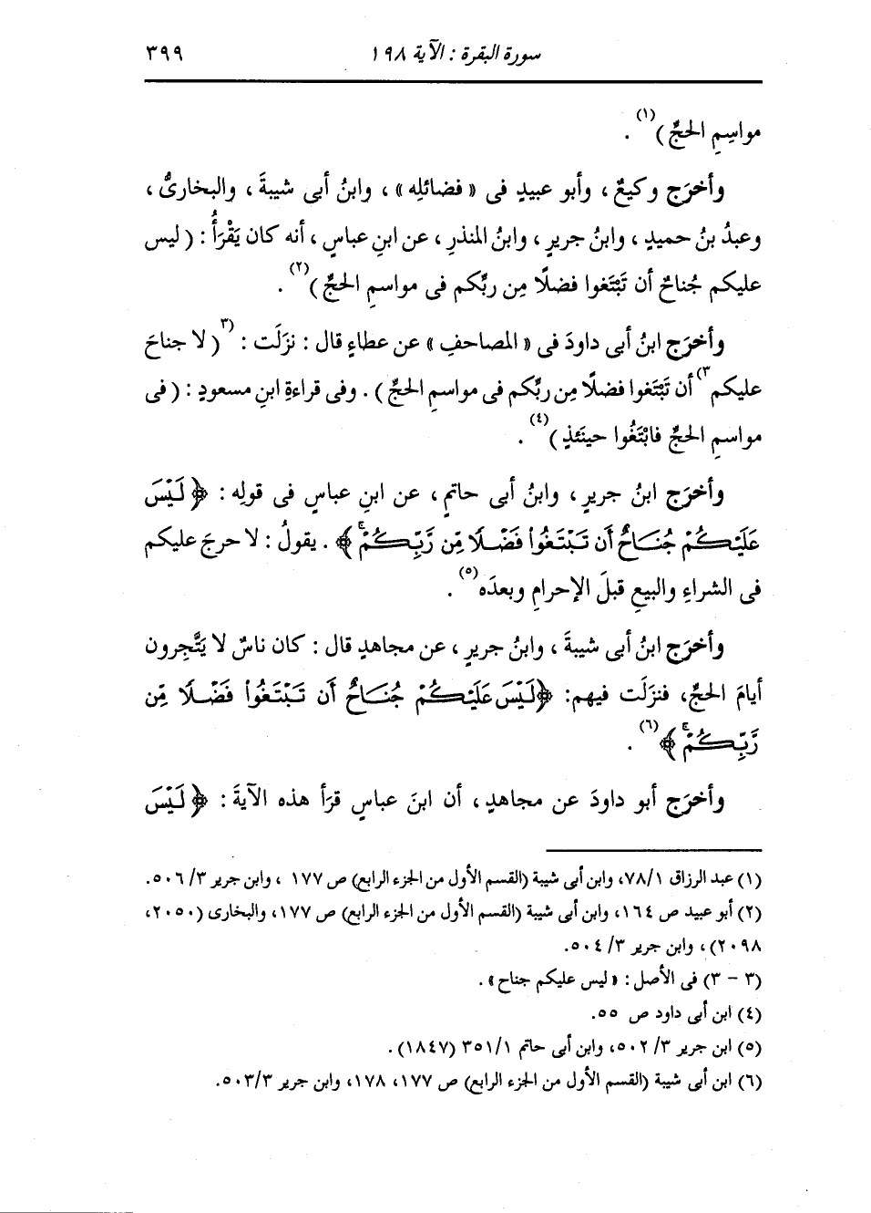 وأخرج وكيع وأبو عبيد في فضائله ، وَابن أبي شيبة والبخاري ، وعَبد بن حُمَيد ، وَابن جَرِير ، وَابن المنذر عن ابن عباس ، أنه كان يقرأ / {ليس عليكم جناح أن تبتغوا فضلا من ربكم في مواسم الحج > /.