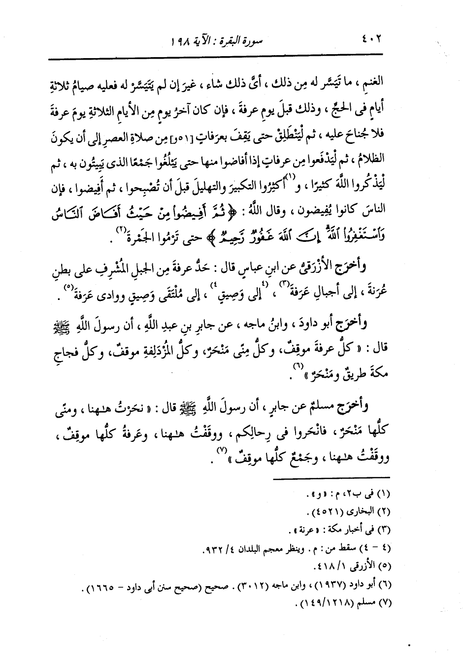 وأخرج أبو داود ، عَن جَابر بن عبد الله أن رسول الله صلى الله عليه وسلم قال : كل عرفة موقف وكل منى نحر وكل المزدلفة موقف وكل فجاج مكة طريق ومنحر.
