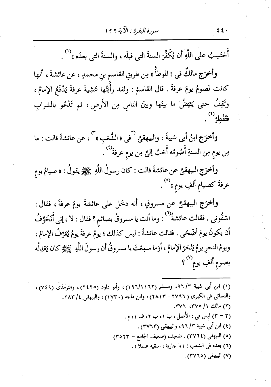 فقالت عائشة وما أنت يا مسروق بصائم ، فقال : لا إني أتخوف أن يكون أضحى ، فقالت عائشة : ليس كذلك يوم عرفة يوم يعرف الإمام ويوم النحر يوم ينحر الإمام أو ما سمعت يا مسروق أن رسول الله صلى الله عليه وسلم كان يعدله بصوم ألف يوم