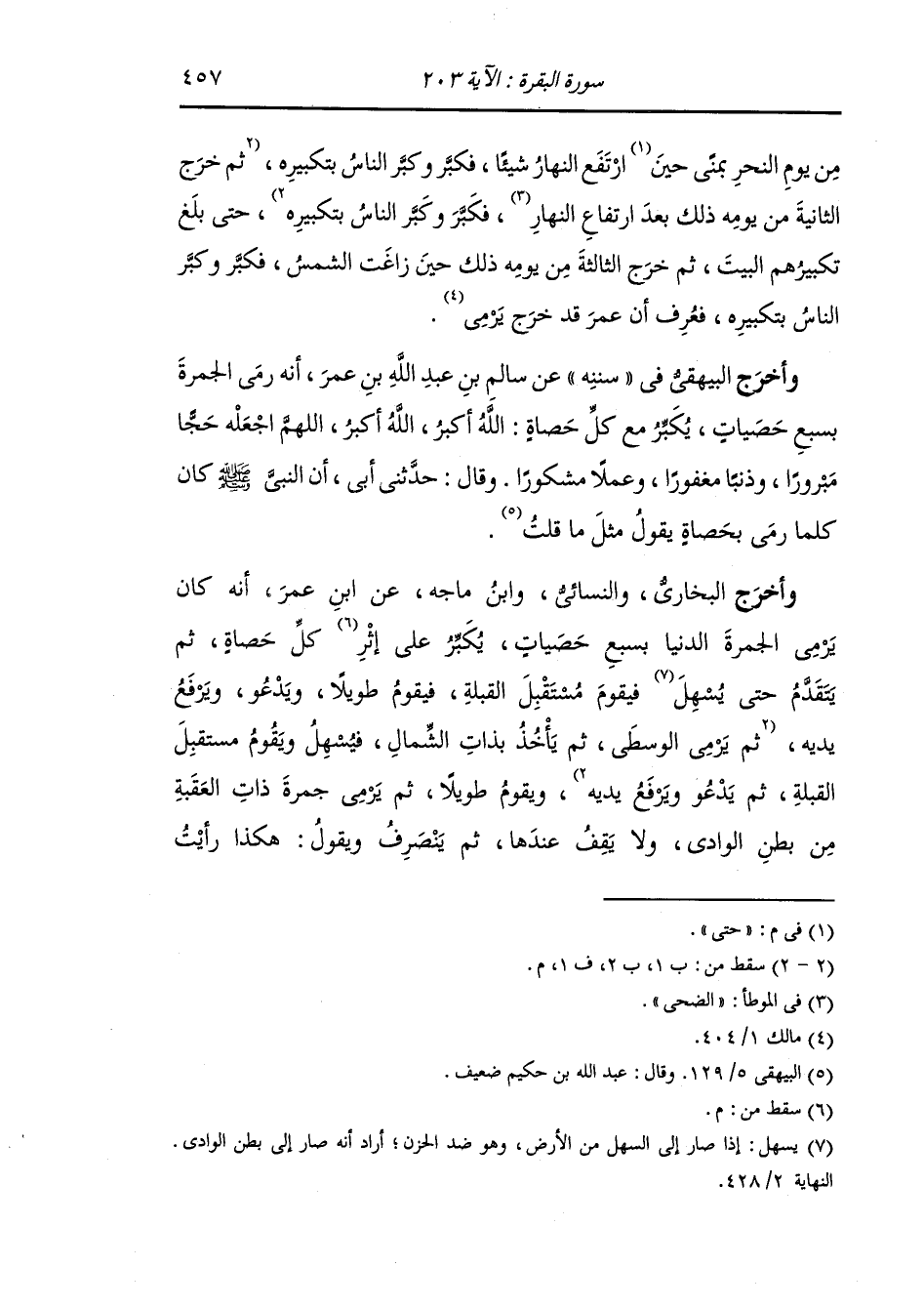 وأخرج البيهقي في "سُنَنِه" عن سالم بن عبد الله بن عمر أنه رمى الجمرة بسبع حصيات يكبر مع كل حصاة الله أكبر الله أكبر اللهم اجعله حجا مبرورا وذنبا مغفورا وعملا مشكورا وقال : حدثني أبي أن النَّبِيّ صلى الله عليه وسلم كان كلما رمى بحصاة يقول مثل ما قلت.