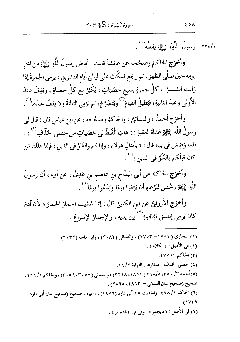 وأخرج أحمد والنسائي والحاكم وصححه عن ابن عباس قال : قال لي رسول الله صلى الله عليه وسلم غداة العقبة هات القط لي حصيات من حصى الخذف فلما وضعن في يده قال : بأمثال هؤلاء وإياكم والغلو في الدين فإنما هلك من كان قبلكم بالغلو في الدين.
