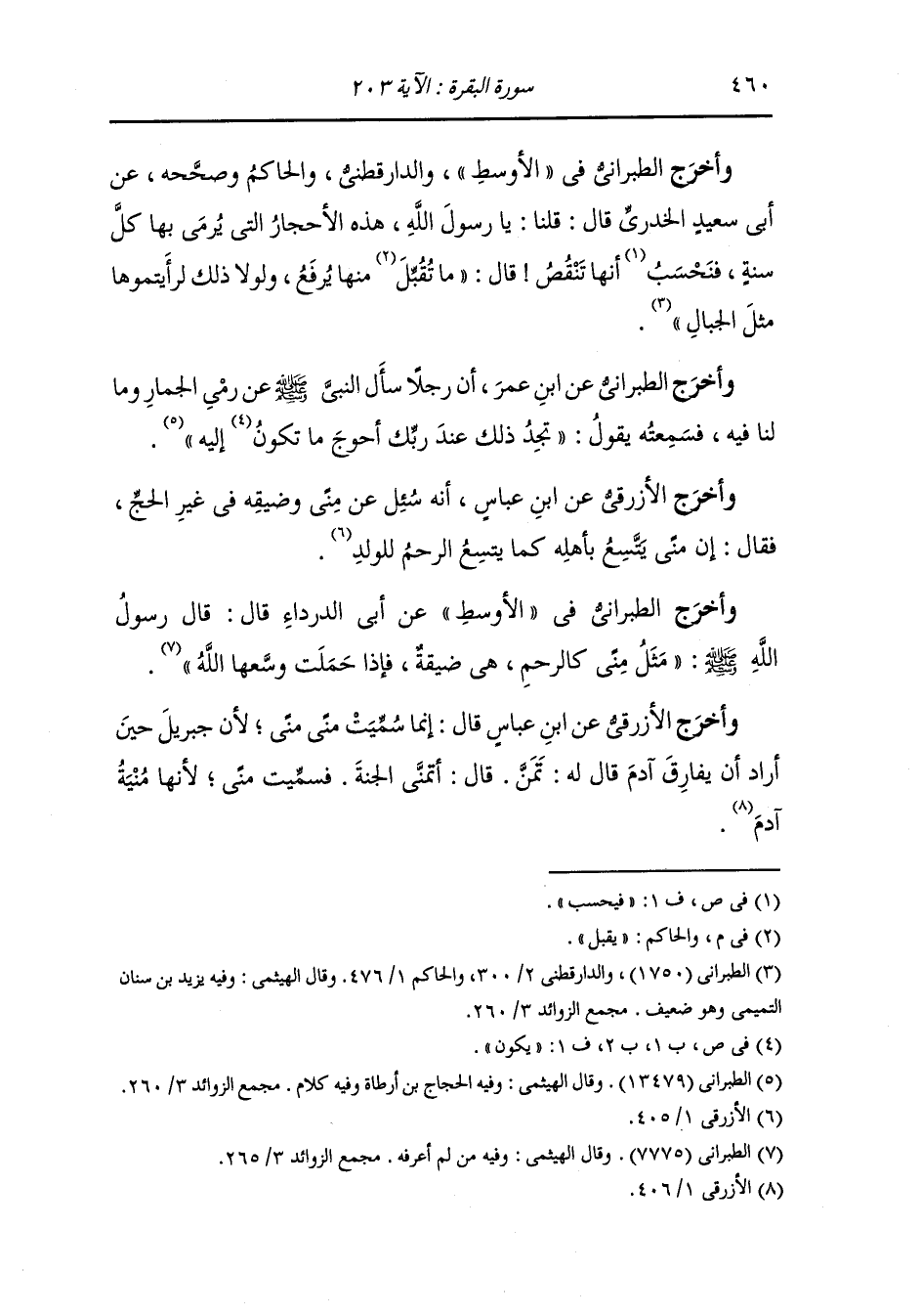 وأخرج الطبراني في الأوسط والدارقطني والحاكم وصححه عن أبي سعيد الخدري قال قلنا : يا رسول الله هذه الأحجار التي يرمى بها كل سنة فنحسب أنها تنقص قال : ما يقبل منها يرفع ولولا ذلك لرأيتموها مثل الجبال.