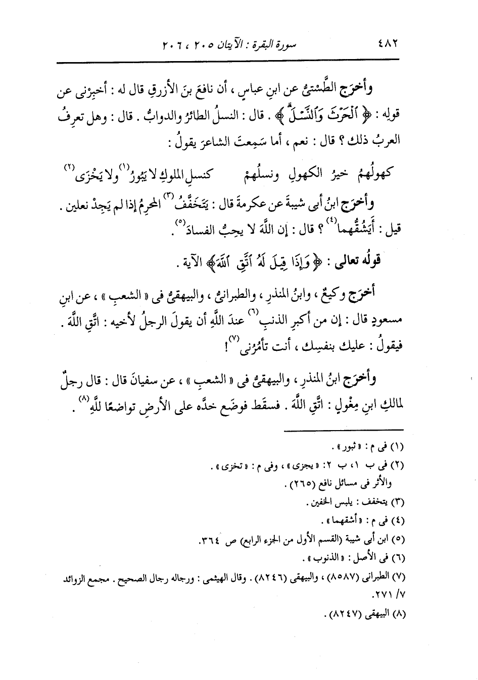 وأخرج الطستي عن ابن عباس ، أن نافع بن الأزرق قال له : أخبرني عن قوله {الحرث والنسل} قال : النسل الطائر والدواب ، قال : وهل تعرف العرب ذلك قال : نعم ، أما سمعت الشاعر يقول :