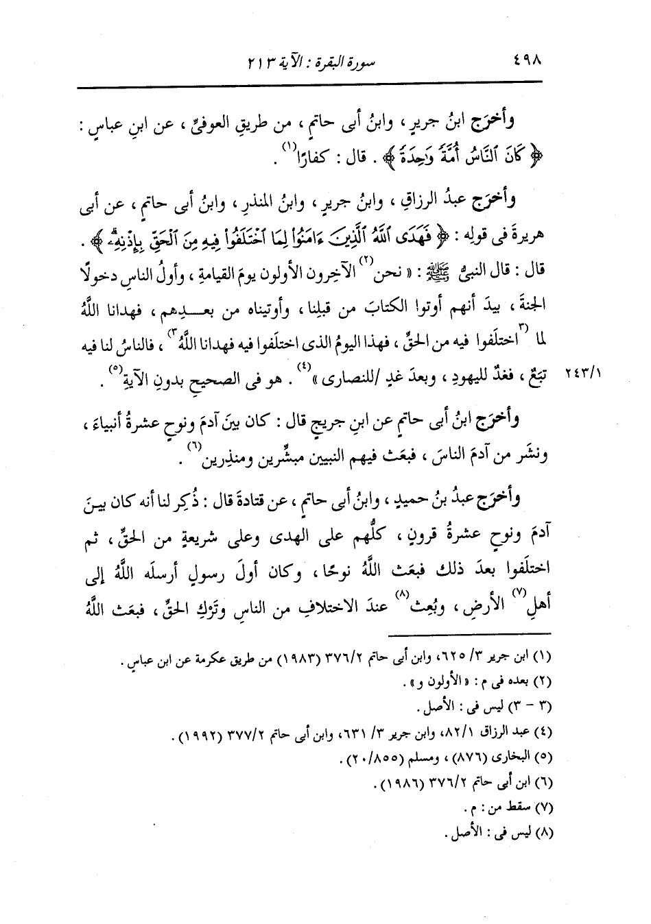 وأخرج ابن جرير ، وَابن أبي حاتم من طريق العوفي عن ابن عباس {كان الناس أمة واحدة} قال : كفارا.