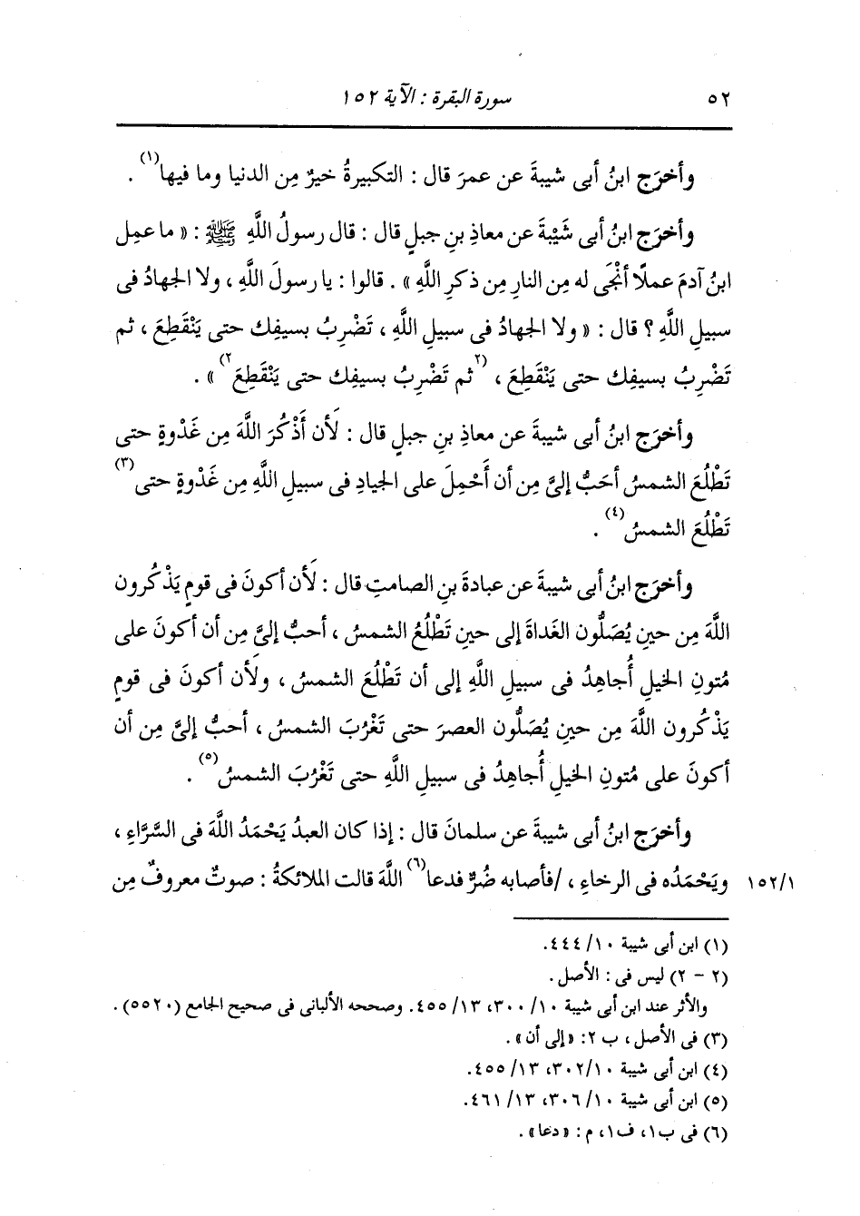 وأخرج أحمد في الزهد عن أبي الدرداء قال : لأن أكبر مائة تكبيرة أحب إلي من أن أتصدق بمائة دينار.