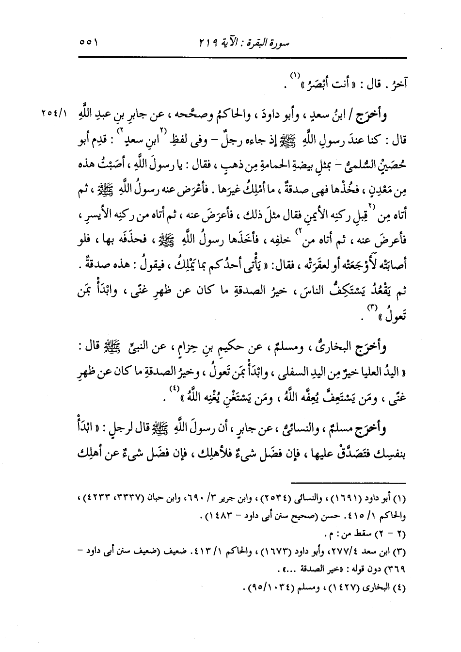 وأخرج مسلم والنسائي ، عَن جَابر أن رسول الله صلى الله عليه وسلم قال لرجل : أبدأ بنفسك فتصدق عليها فإن فضل شيء فلأهلك فإن فضل شيء عن أهلك