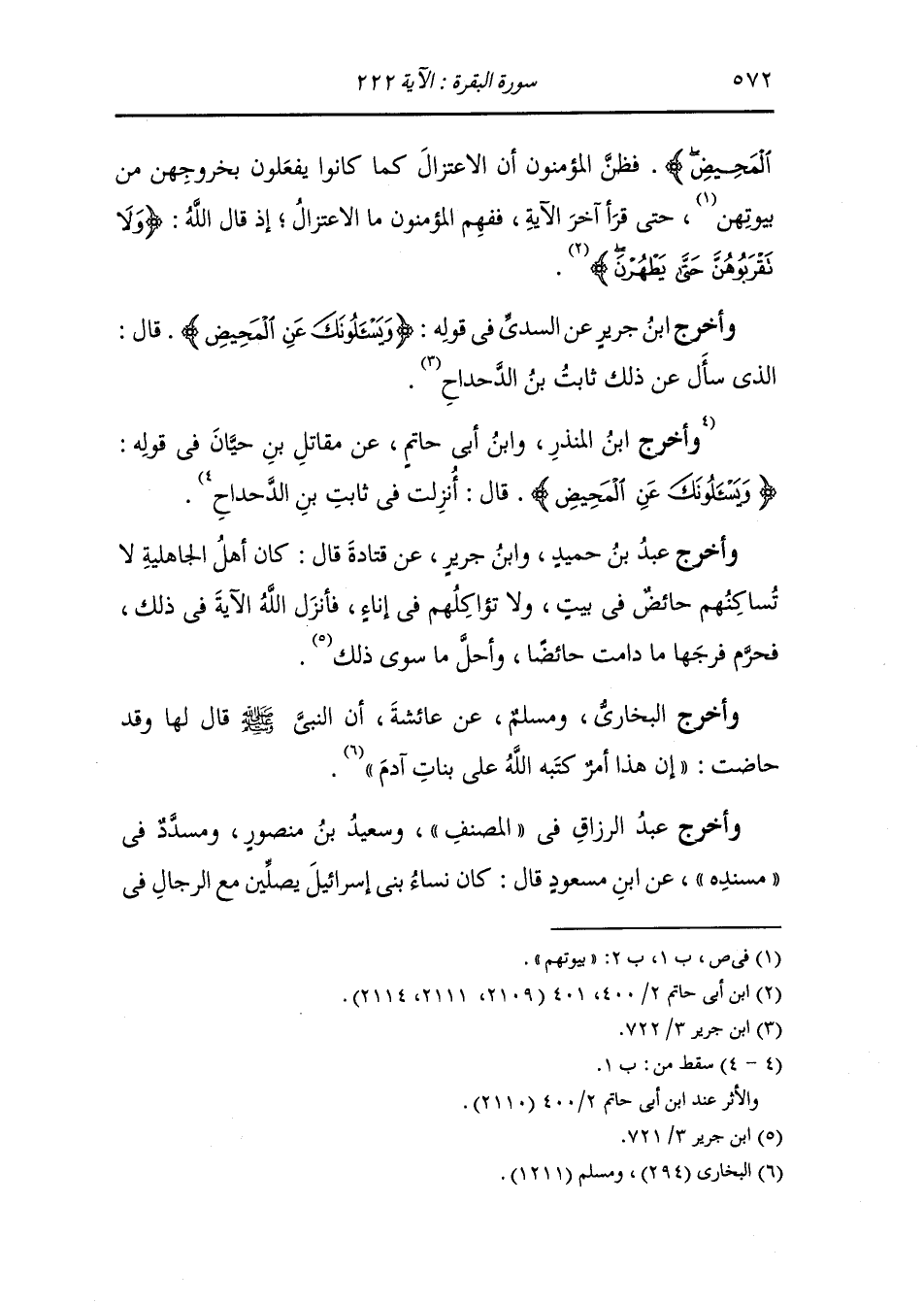 وأخرج ابن جرير عن السدي في قوله {ويسألونك عن المحيض} قال : الذي سأل عن ذلك ثابت بن الدحداح.