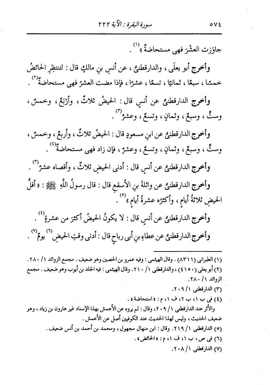 وأخرج الدارقطني عن أنس قال : الحيض ثلاث وأربع وخمس وست وسبع وثمان وتسع وعشر.