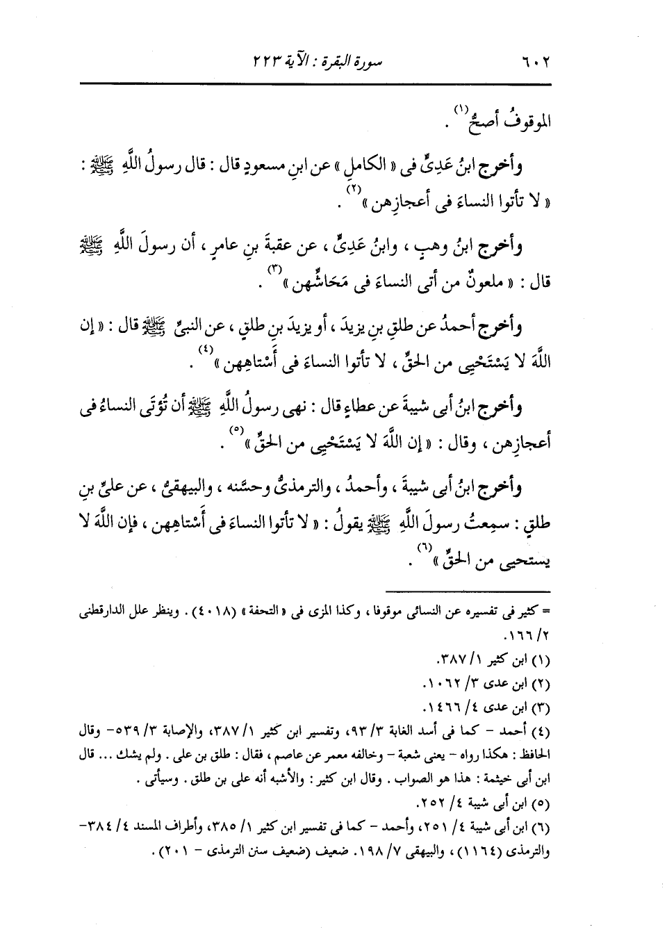وأخرج ابن عدي في الكامل عن ابن مسعود قال : قال رسول الله صلى الله عليه وسلم لا تأتوا النساء في أعجازهن.