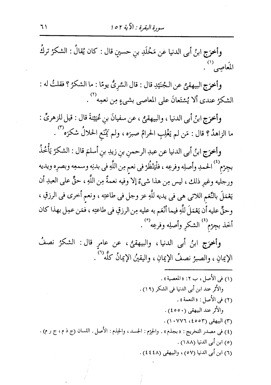 وأخرج ابن أبي الدنيا والبيهقي عن عمر بن عبد العزيز قال : قيدوا نعم الله بالشكر لله عز وجل شكر الله ترك المعصية