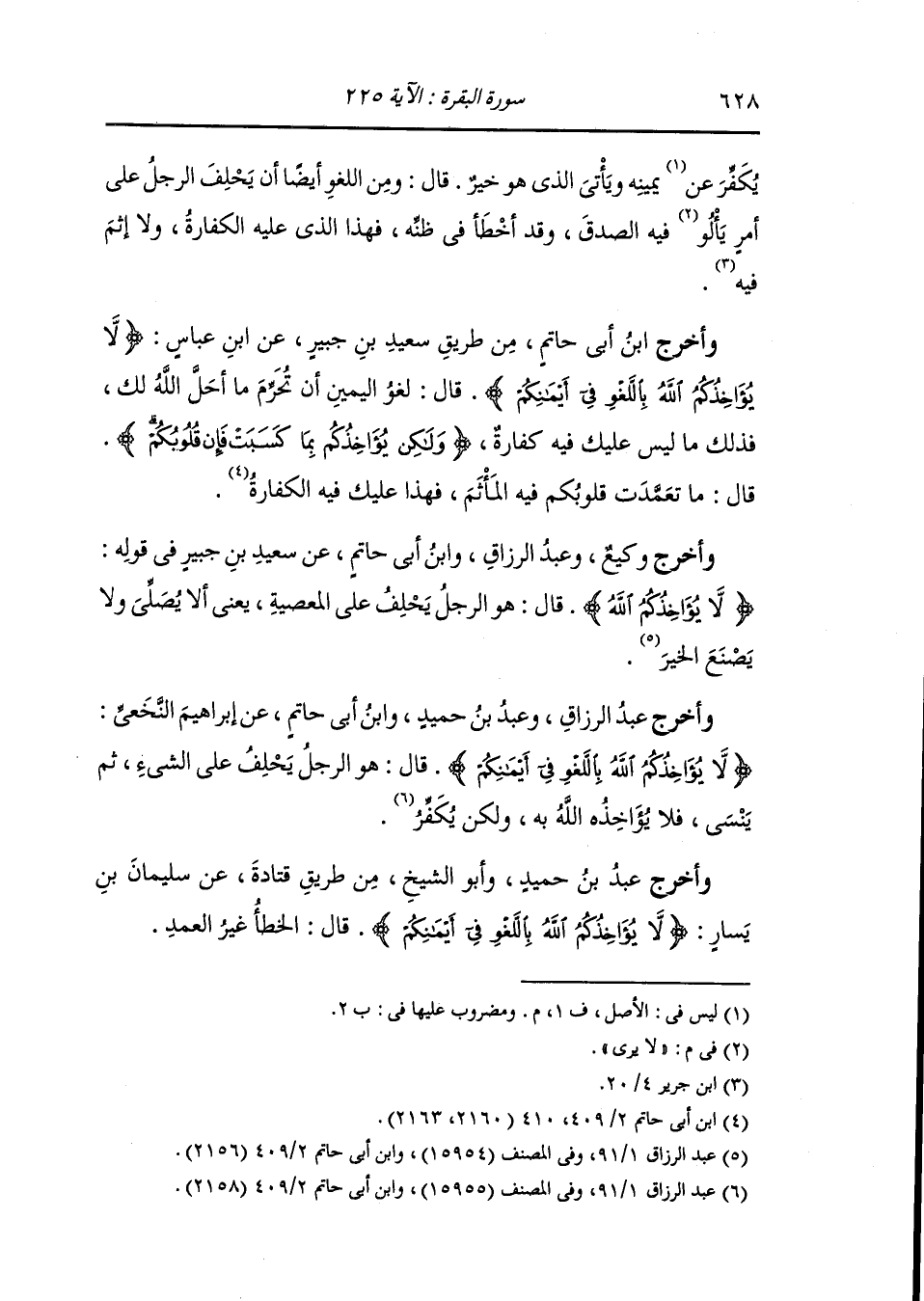 وأخرج وكيع وعبد الرزاق ، وَابن أبي حاتم عن سعيد بن جبير في قوله {لا يؤاخذكم الله باللغو في أيمانكم} قال : هو الرجل يحلف على المعصية يعني أن لا يصلي ولا يصنع الخير.