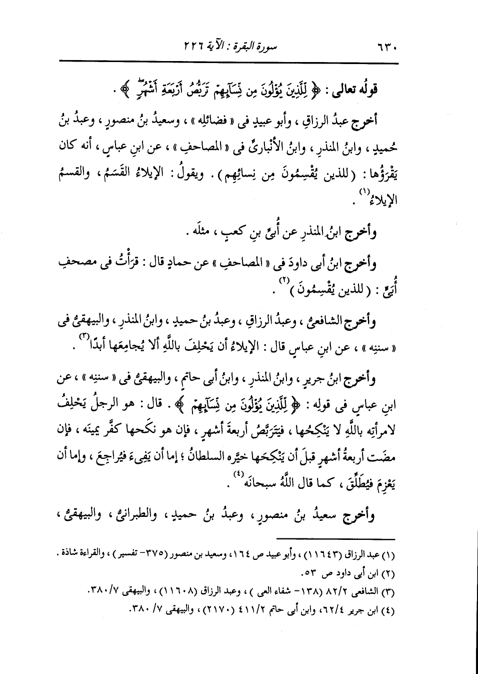 وأخرج ابن جرير ، وَابن المنذر والبيهقي في "سُنَنِه" عن ابن عباس في قوله {للذين يؤلون من نسائهم} قال : هو الرجل يحلف لأمرأته بالله لا ينكحها