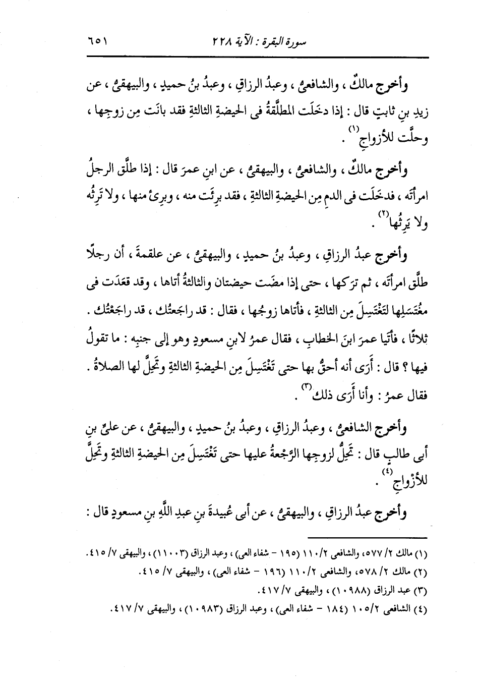 وأخرج الشافعي وعبد الرزاق ، وعَبد بن حُمَيد والبيهقي عن علي بن أبي طالب قال : تحل لزوجها الرجعة عليها حتى تغتسل من الحيضة الثالثة وتحل للأزواج.