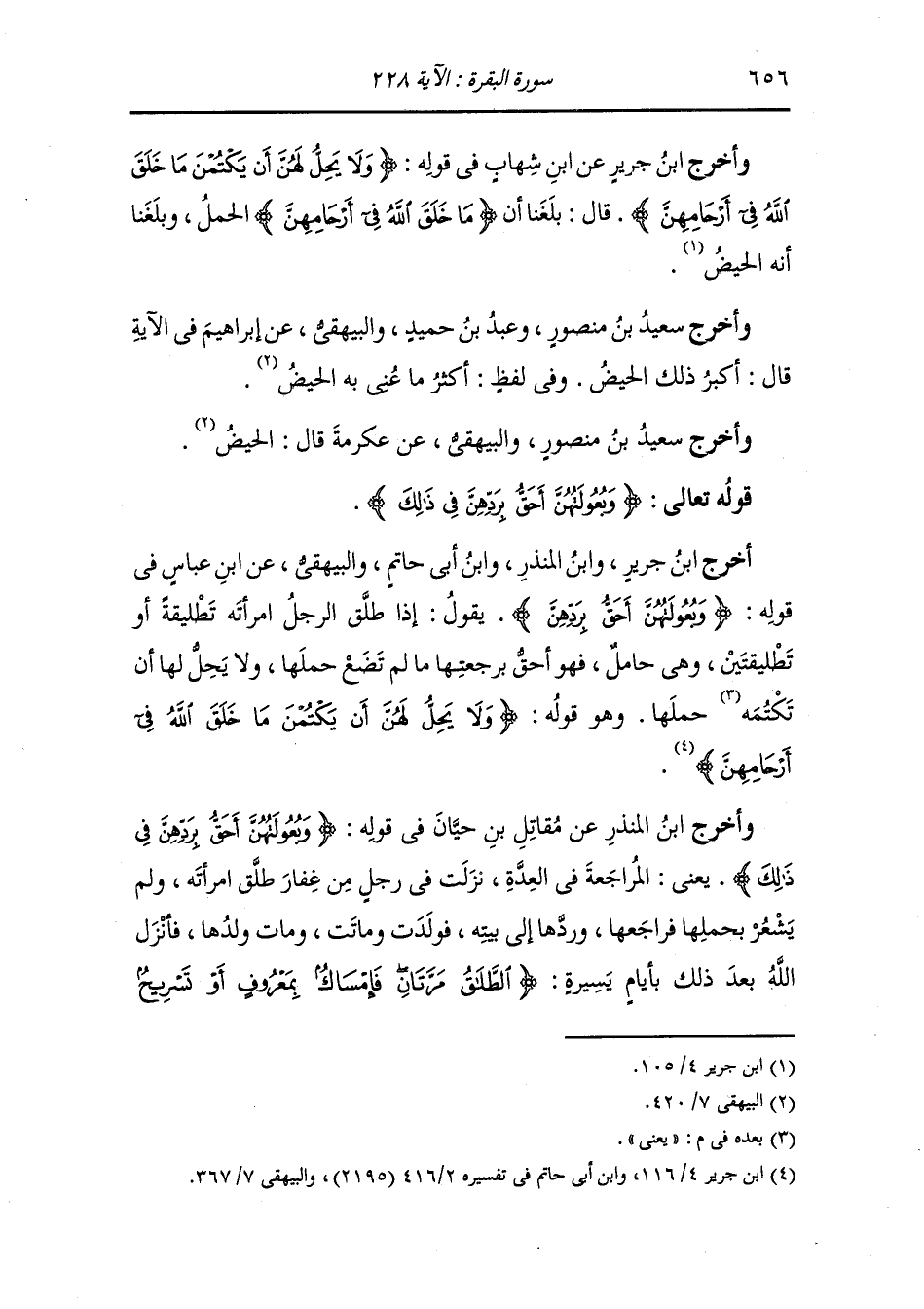 أخرج ابن جرير ، وَابن المنذر ، وَابن أبي حاتم والبيهقي عن ابن عباس في قوله {وبعولتهن أحق بردهن في ذلك} يقول : إذا طلق الرجل امرأته تطليقة أو تطلقتين وهي حامل فهو أحق برجعتها ما لم تضع حملها ولا يحل لها أن تكتمه يعني حملها وهو قوله {ولا يحل لهن أن يكتمن ما خلق الله في أرحامهن}.