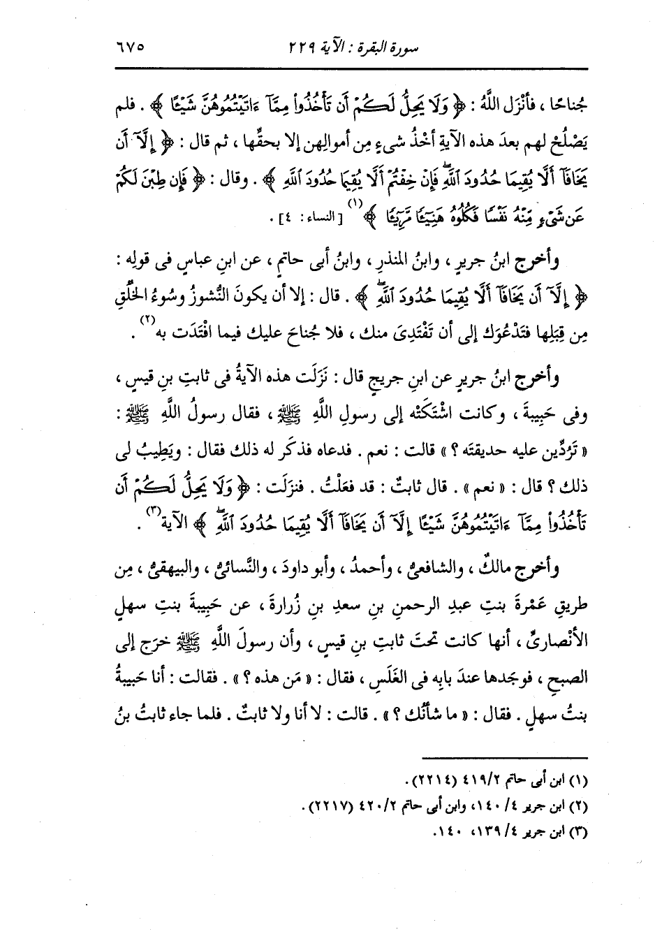 وأخرج ابن جرير عن ابن جريج قال : نزلت هذه الآية في ثابت بن قيس وفي حبيبة وكانت اشتكته إلى رسول الله صلى الله عليه وسلم فقال رسول الله صلى الله عليه وسلم تردين عليه حديقته قالت : نعم ، فدعاه فذكر له ذلك فقال : ويطيب لي ذلك قال : نعم قال ثابت : قد فعلت ، فنزلت {ولا يحل لكم أن تأخذوا مما آتيتموهن شيئا إلا أن يخافا ألا يقيما حدود الله} الآية.