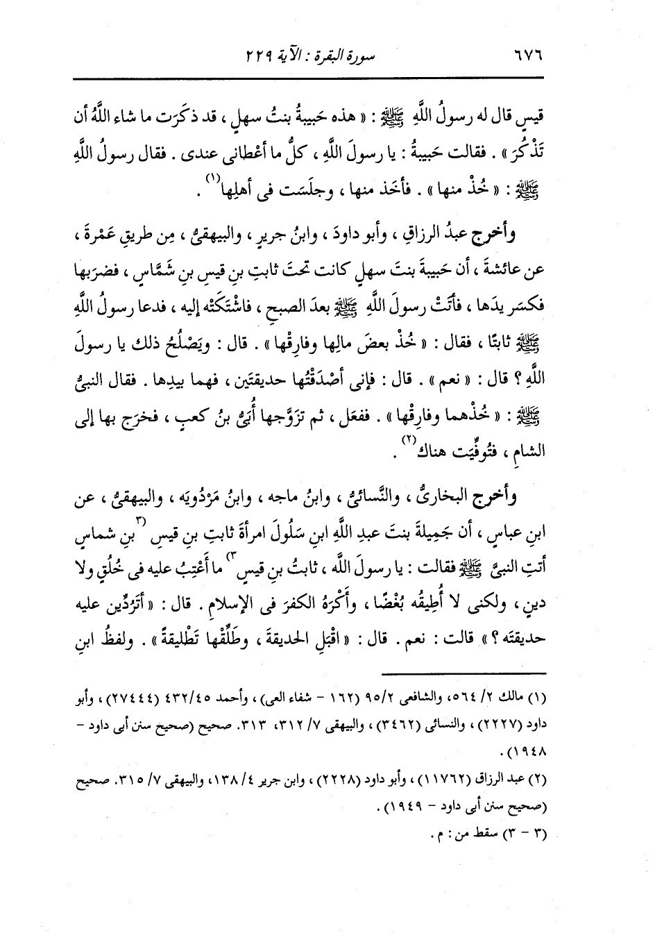 وأخرج البخاري والنسائي ، وَابن ماجة ، وَابن مردويه والبيهقي عن ابن عباس أن جميلة بنت عبد الله بن سلول امرأة ثابت بن قيس قالت : ما أعتب عليه في خلق ولا دين ولكني لا أطيقه بغضا وأكره الكفر في الإسلام ، قال : أتردين عليه حديقته قالت : نعم ، قال : اقبل الحديقة وطلقها تطليقة ، ولفظ ابن