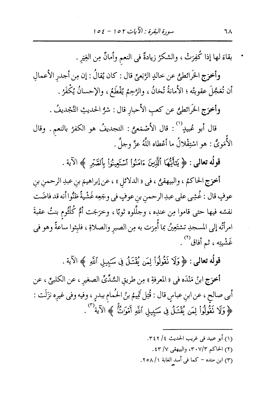 وأخرج الخرائطي عن جعفر بن محمد بن علي بن حسين بن علي بن أبي طالب قال : أشكر المنعم عليك فإنه لا نفاد للنعم إذا شكرت ولا