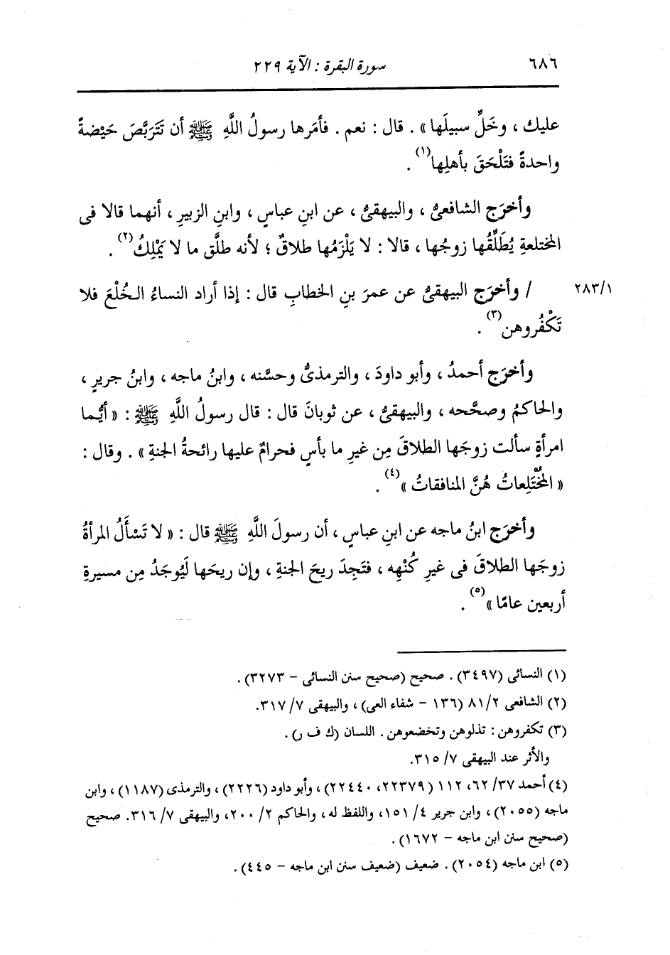 وأخرج أحمد وأبو داود والترمذي وحسنه ، وَابن ماجة ، وَابن جَرِير والحاكم وصححه والبيهقي عن ثوبان قال : قال رسول الله صلى الله عليه وسلم أيما امرأة سألت زوجها