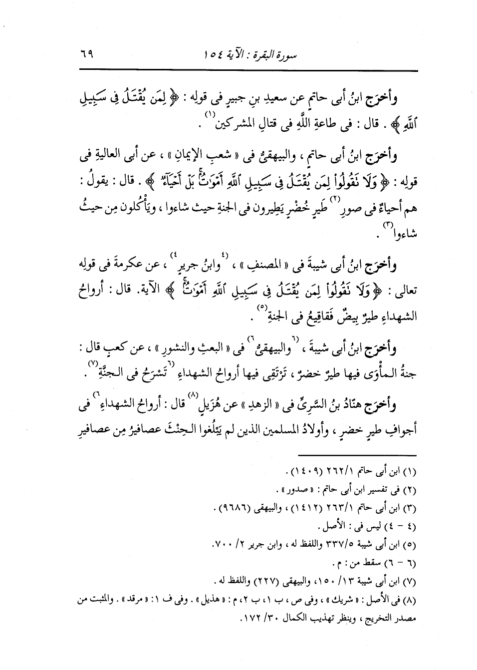 قوله تعالى : ولا تقولوا لمن يقتل في سبيل الله أموات بل أحياء ولكن لا تشعرون.