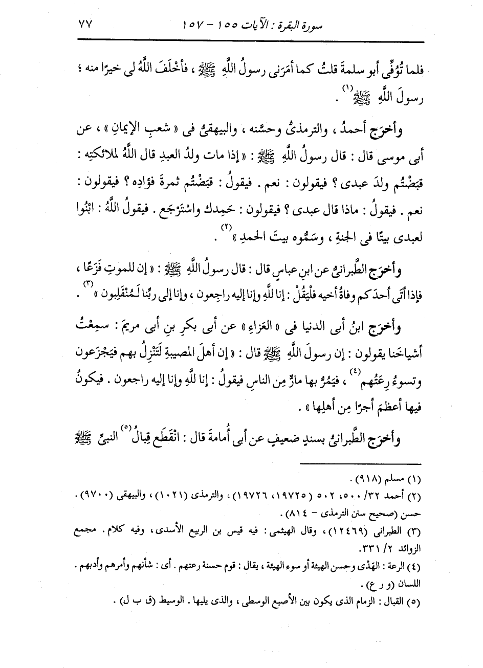 وأخرج ابن أبي الدنيا عن كعب قال : ما من رجل تصيبه مصيبة فيذكرها بعد أربعين سنة فيسترجع إلا أجرى الله له أجرها تلك الساعة كما أنه لو استرجع يوم أصيب.