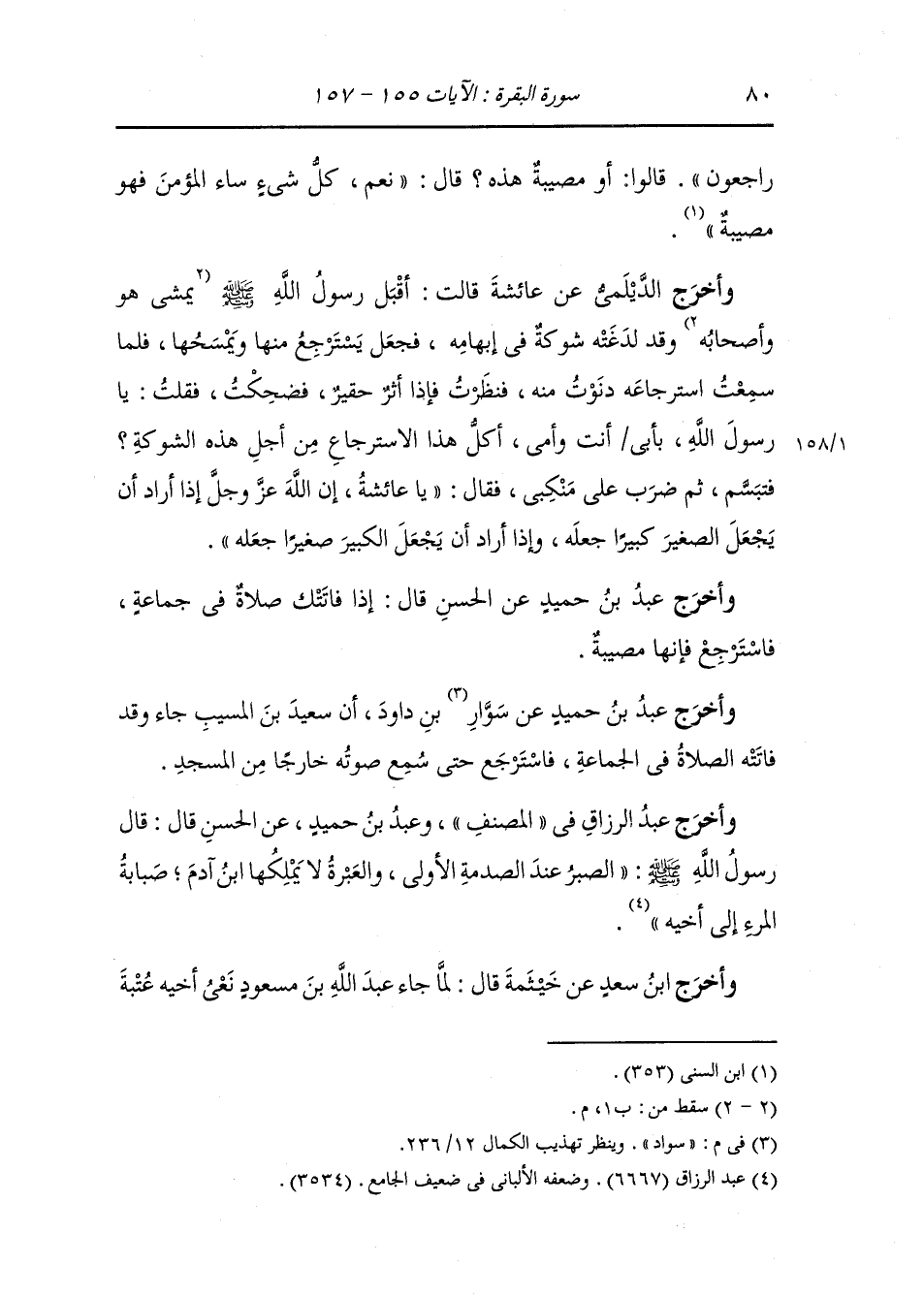وأخرج عَبد بن حُمَيد ، وَابن أبي الدنيا في العزاء عن عكرمة قال طفى ء سراج النَّبِيّ صلى الله عليه وسلم فقال : إنا لله وإنا إليه راجعون ، فقيل : يا رسول الله أ مصيبة هي قال : نعم وكل ما يؤذي المؤمن فهو مصيبة له وأجر.