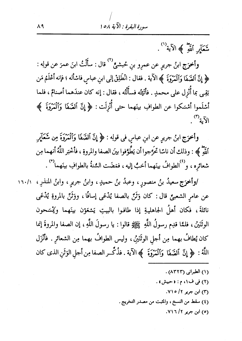 وأخرج ابن جرير ، وَابن أبي داود في المصاحف ، وَابن أبي حاتم والحاكم وصححه عن ابن عباس قال : كانت الشياطين في الجاهلية تعزف الليل أجمع بين الصفا والمروة فكانت فيها آلهة لهم أصنام فلما جاء الإسلام قال المسلمون : يا رسول الله ألا نطوف بين الصفا والمروة فإنه شيء كنا نصنعه في الجاهلية فأنزل الله {فمن حج البيت أو اعتمر فلا جناح عليه أن يطوف بهما} يقول : ليس عليه إثم ولكن له أجر.