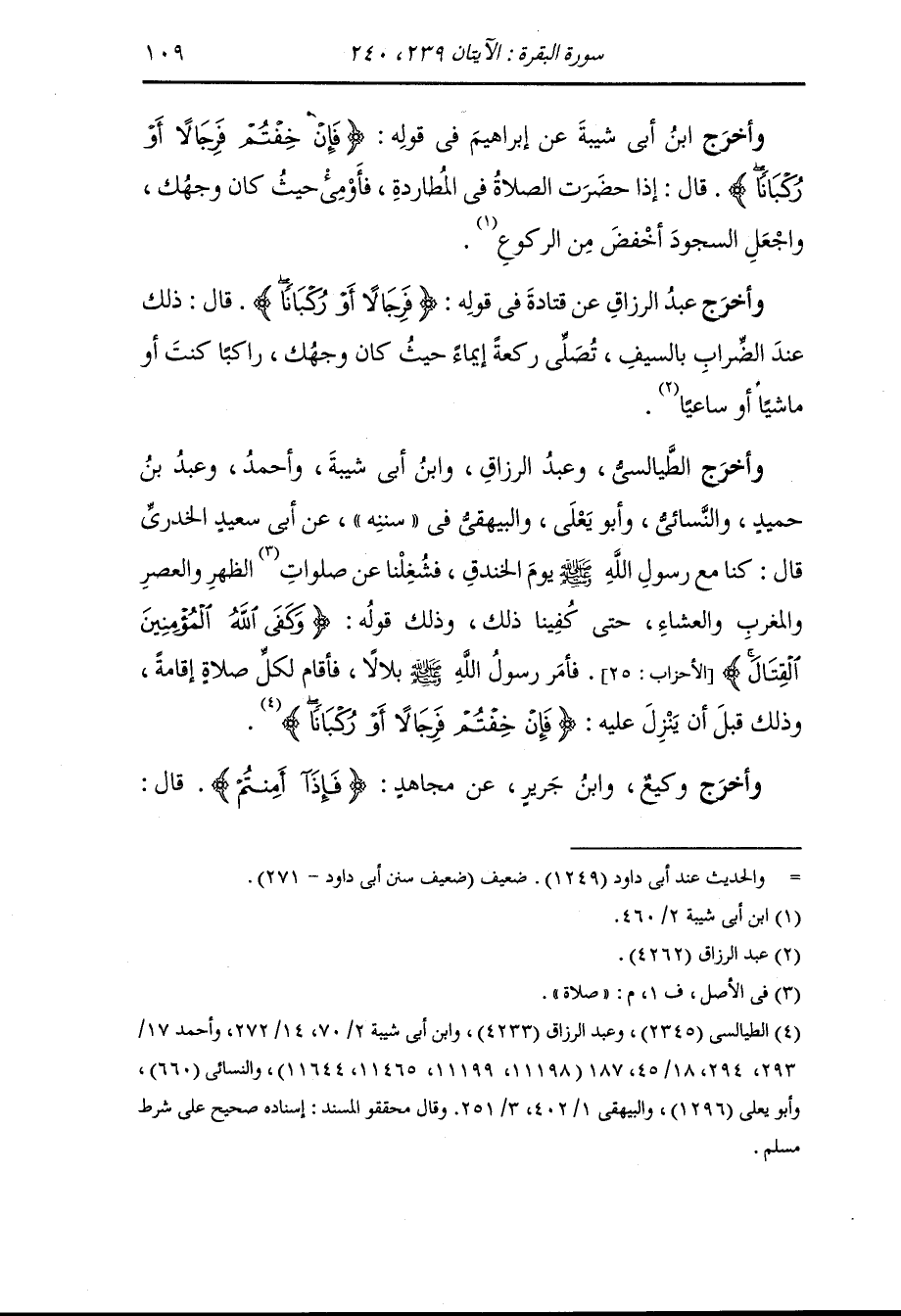 وأخرج عَبد بن حُمَيد عن ابن عباس {فإن خفتم فرجالا أو ركبانا} قال : ركعة ركعة.