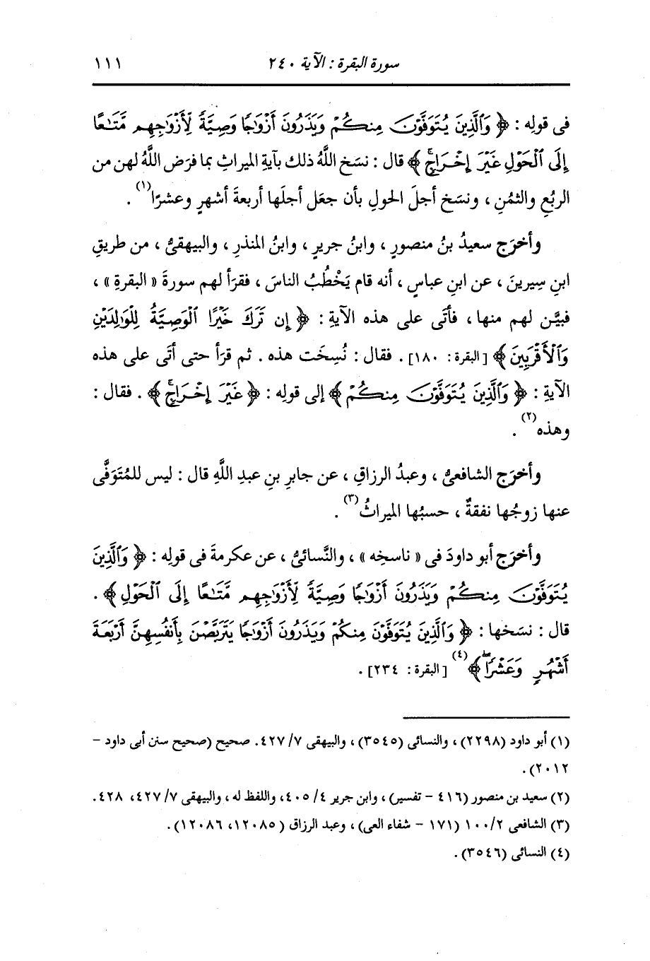 وأخرج البخاري والبيهقي في "سُنَنِه" عن ابن الزبيرقال : قلت لعثمان بن عفان {والذين يتوفون منكم ويذرون أزواجا} قد نسختها الآية الأخرى فلم تكتبها أو تدعها قال : يا ابن أخي لا أغير شيئا منه من مكانه.