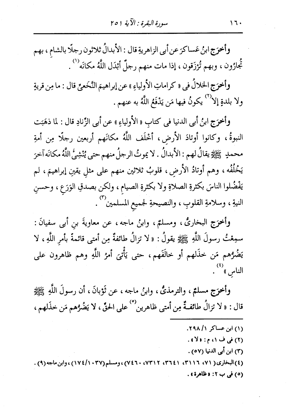 وأخرج الخلال في كرامات الأولياء عن زاذان قال : ما خلت الأرض بعد نوح من اثني عشر فصاعدا يدفع الله بهم عن أهل الأرض.