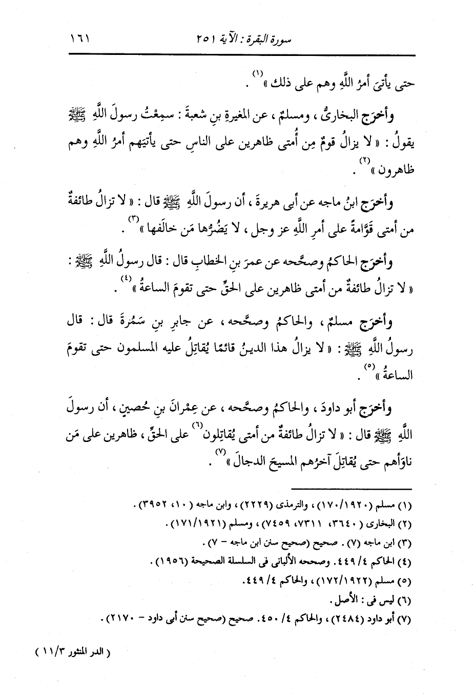 وأخرج مسلم والترمذي ، وَابن ماجة عن ثوبان أن رسول الله صلى الله عليه وسلم قال : لا تزال طائفة من أمتي ظاهرين على الحق لا يضرهم من خذلهم