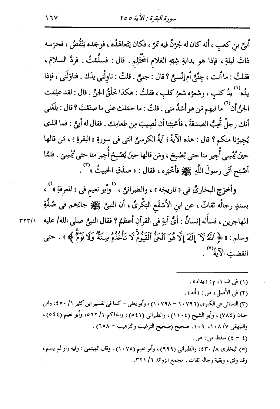 أخرج أحمد واللفظ له ومسلم وأبو داود ، وَابن الضريس والحاكم والهروي في فضائله عن أبي بن كعب أن النَّبِيّ صلى الله عليه وسلم سأله أي آية في كتاب الله أعظم قال :