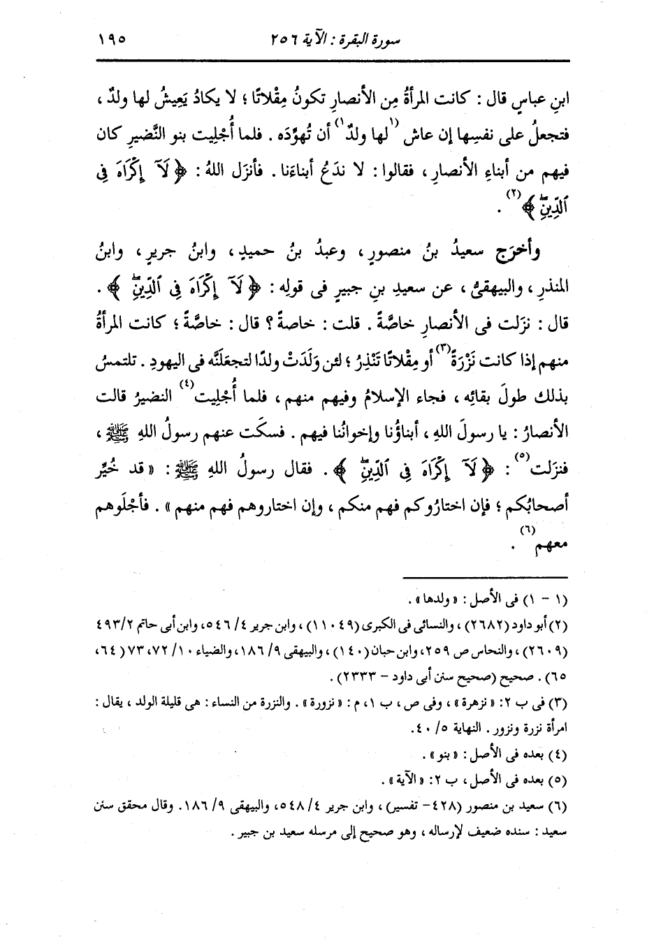 أخرج أبو داود والنسائي ، وَابن جَرِير ، وَابن المنذر ، وَابن أبي حاتم والنحاس في ناسخه ، وَابن منده في غرائب شعبه ، وَابن حبان ، وَابن مردويه والبيهقي في "سُنَنِه" والضياء في المختارة عن