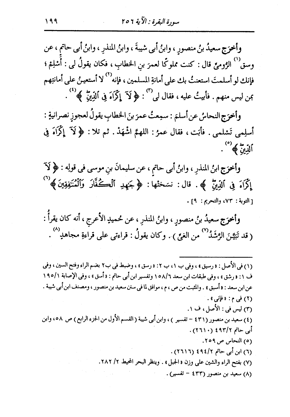 وأخرج سعيد بن منصور عن الحسن في قوله {لا إكراه في الدين} قال : لا يكره أهل الكتاب على الإسلام