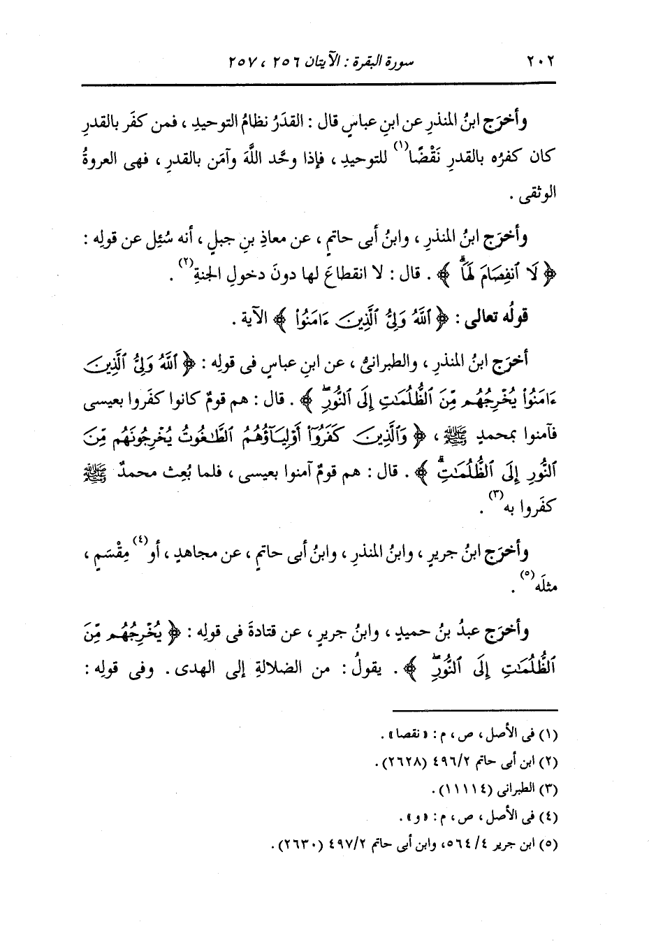 وأخرج ابن أبي شيبة في المصنف " ، وَابن أبي حاتم عن أنس بن مالك في قوله : (فقد استمسك بالعروة الوثقى) . قال : القرآن ..
