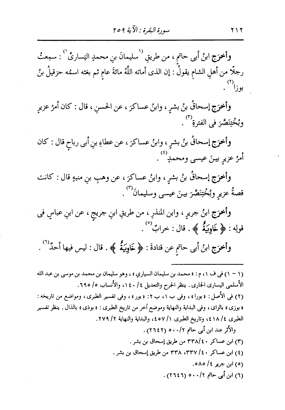 وأخرج ابن جرير عن عكرمة في قوله {أو كالذي مر على قرية} قال : القرية بيت المقدس مر بها عزير بعد أن خربها بختنصر.