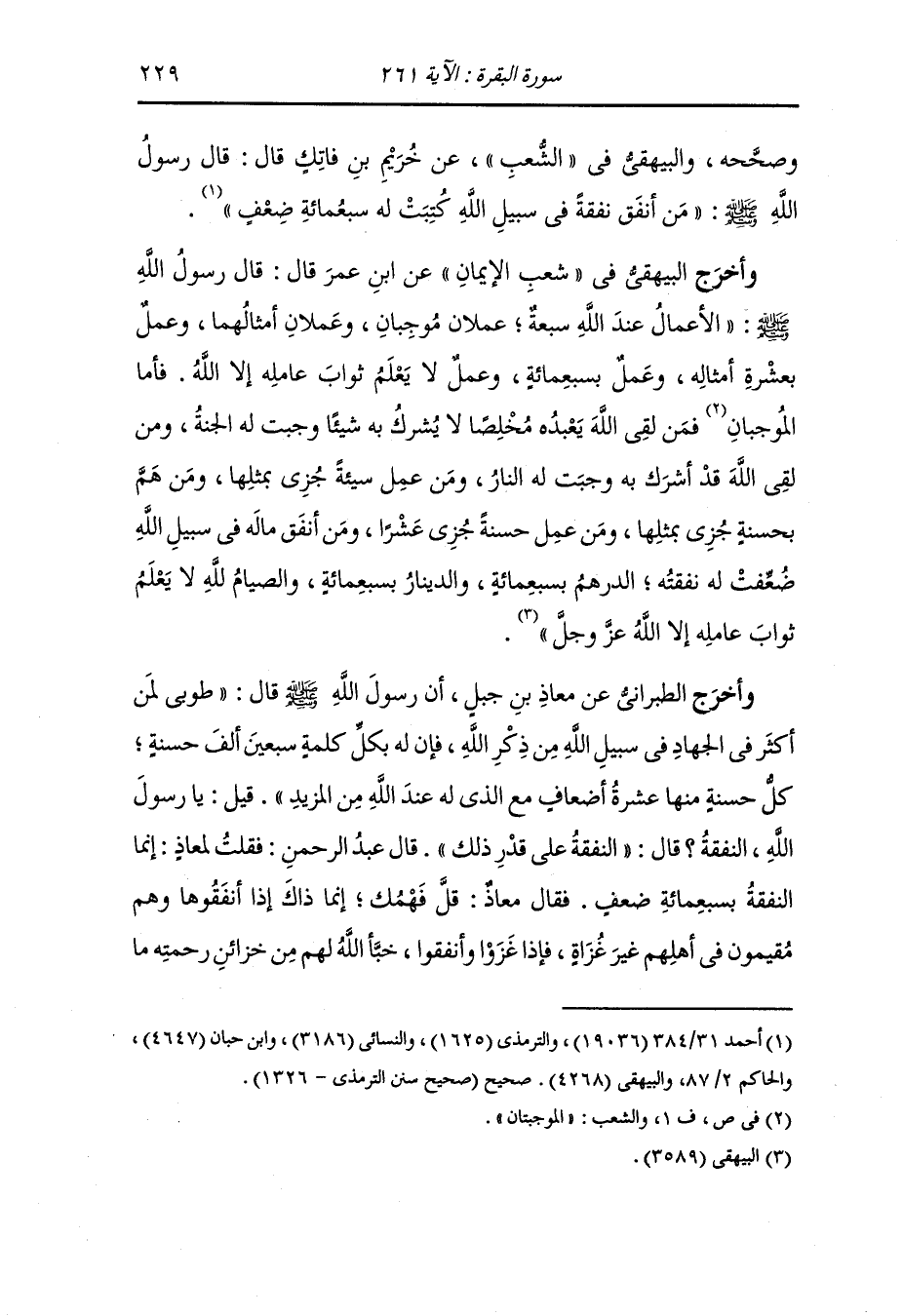 وأخرج أحمد ومسلم والنسائي والحاكم والبيهقي عن ابن مسعود أن رجلا تصدق بناقة مخطومة في سبيل الله فقال رسول الله صلى الله عليه وسلم : لك بها يوم القيامة سبعمائة ناقة كلها مخطومة.