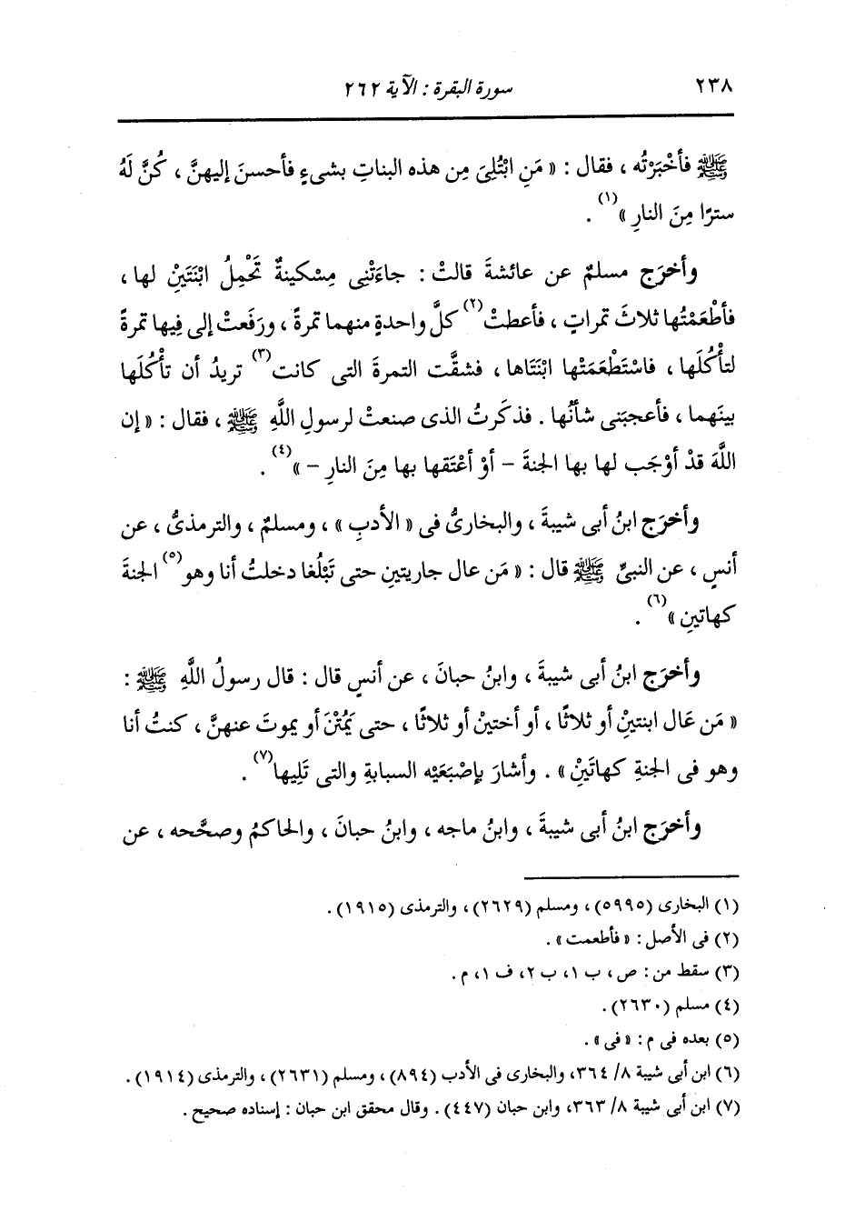 وأخرج الطبراني والبيهقي في الشعب عن عوف بن مالك ، أن رسول الله صلى الله عليه وسلم قال ما من مسلم يكون له ثلاث بنات فينفق عليهن حتى يبن أو يمتن إلا كن له حجابا من النار ، فقالت امرأة : أو بنتان فقال : أو بنتان.