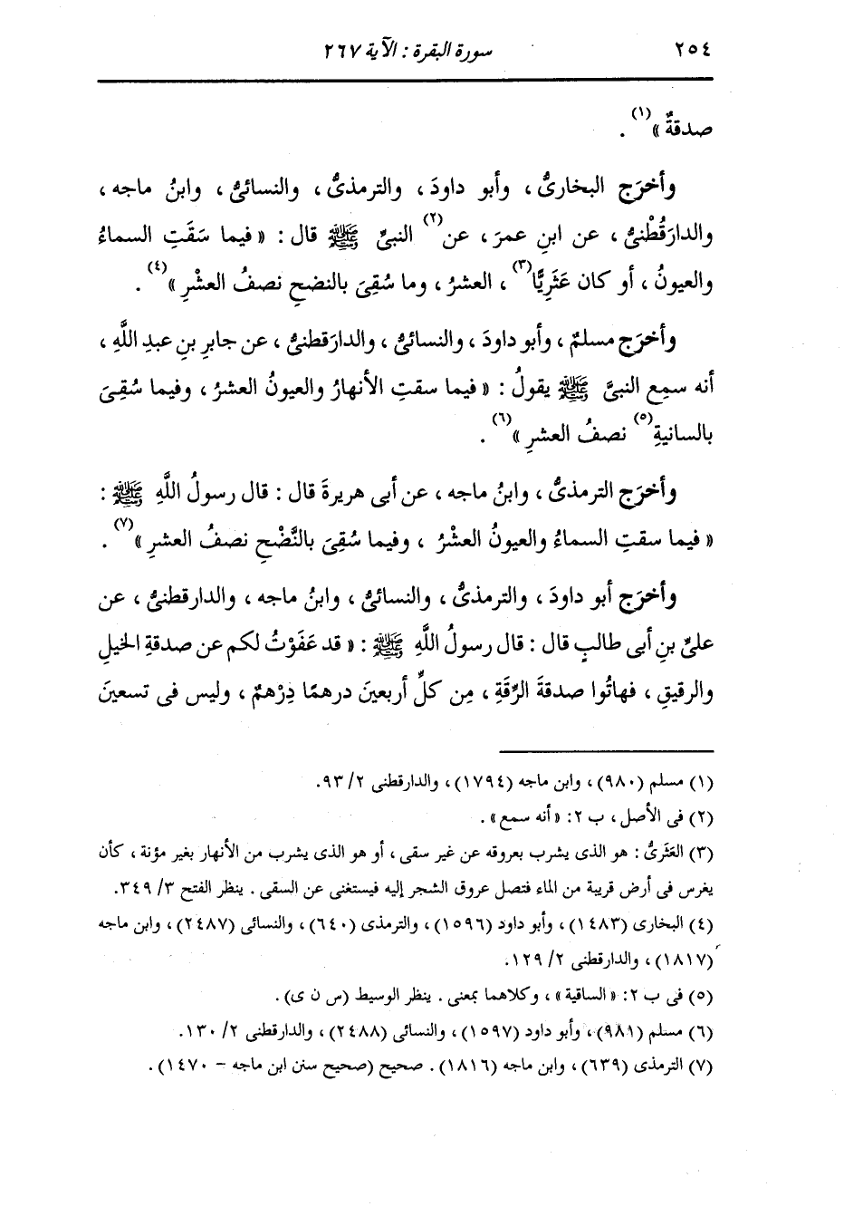وأخرج مسلم ، وَابن ماجه والدارقطني ، عَن جَابر بن عبد الله عن رسول الله صلى الله عليه وسلم قال ليس فيما دون خمس أواق من الورق صدقة وليس فيما دون خمس ذود من الإبل صدقة وليس فيما دون خمسة أوسق من التمر
