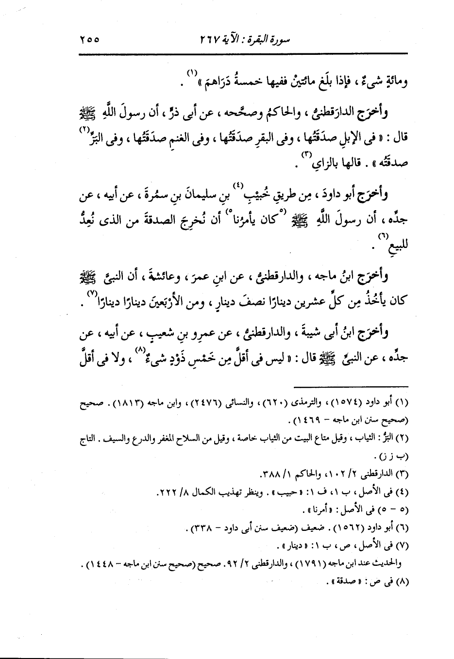 وأخرج أبو داود والترمذي والنسائي ، وَابن ماجه والدارقطني عن علي بن أبي طالب قال : قال رسول الله صلى الله عليه وسلم قد عفوت لكم عن صدقة الخيل والرقيق فهاتوا صدقة الرقة من كل أربعين درهما درهم وليس في تسعين