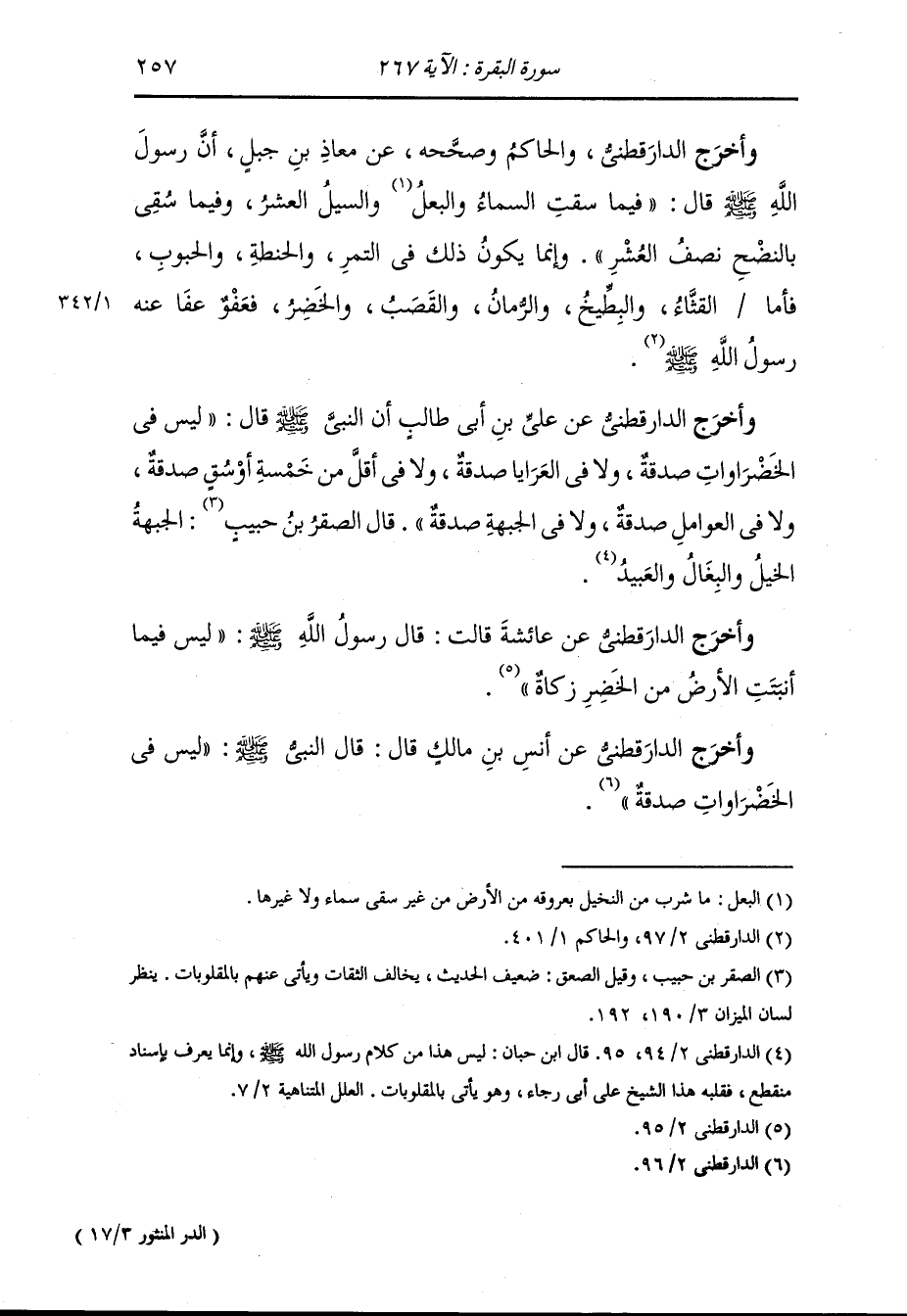 وأخرج ابن ماجه والدارقطني عن عمرو بن شعيب عن أبيه قال : سئل عبد الله بن عمر عن الجوهر والدار والفصوص والخرز وعن نبات الأرض البقل والقثاء والخيار ، فقال : ليس في الحجر زكاة وليس البقول زكاة إنما سن رسول الله صلى الله عليه وسلم الزكاة في هذه الخمسة : في الحنطة والشعير والتمر والزبيب والذرة.
