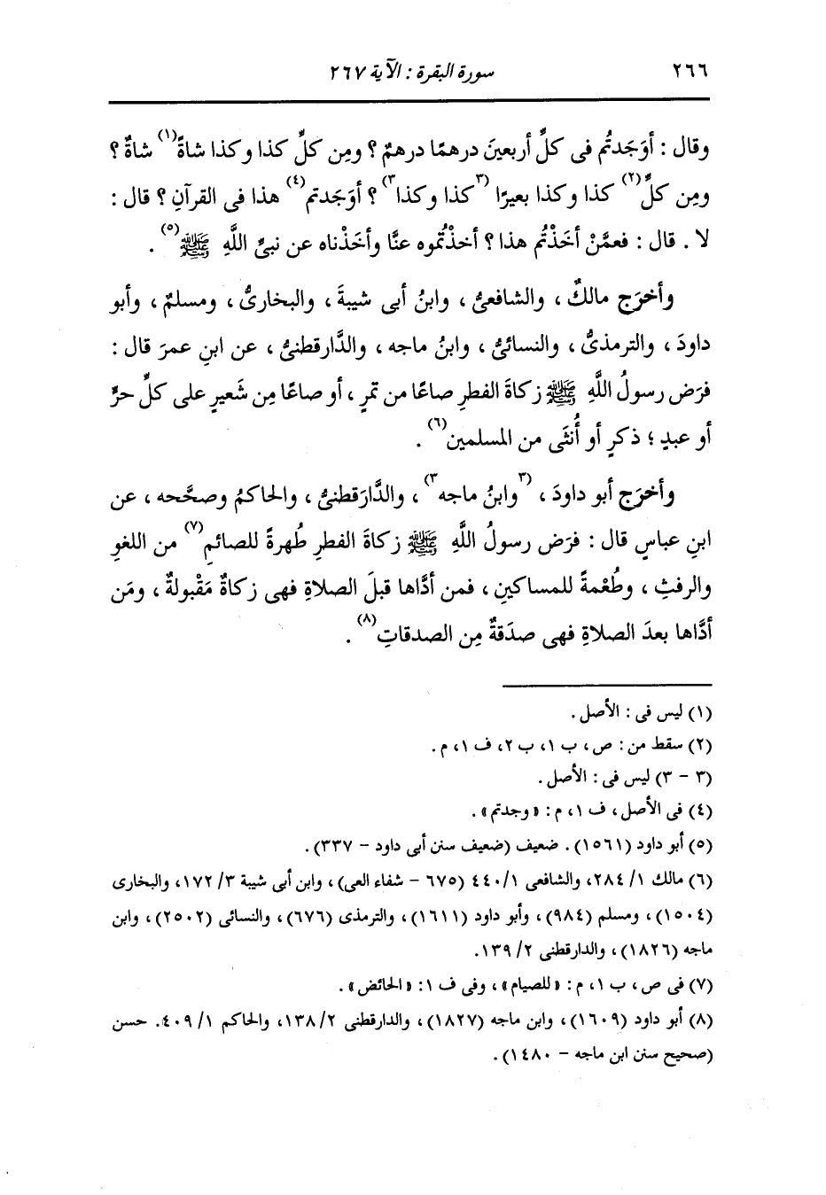 وأخرج أبو داود عن حبيب المالكي قال : قال رجل لعمران بن حصين : يا أبا نجيد إنكم لتحدثونا بأحاديث ما نجد لها أصلا في القرآن فغضب عمران