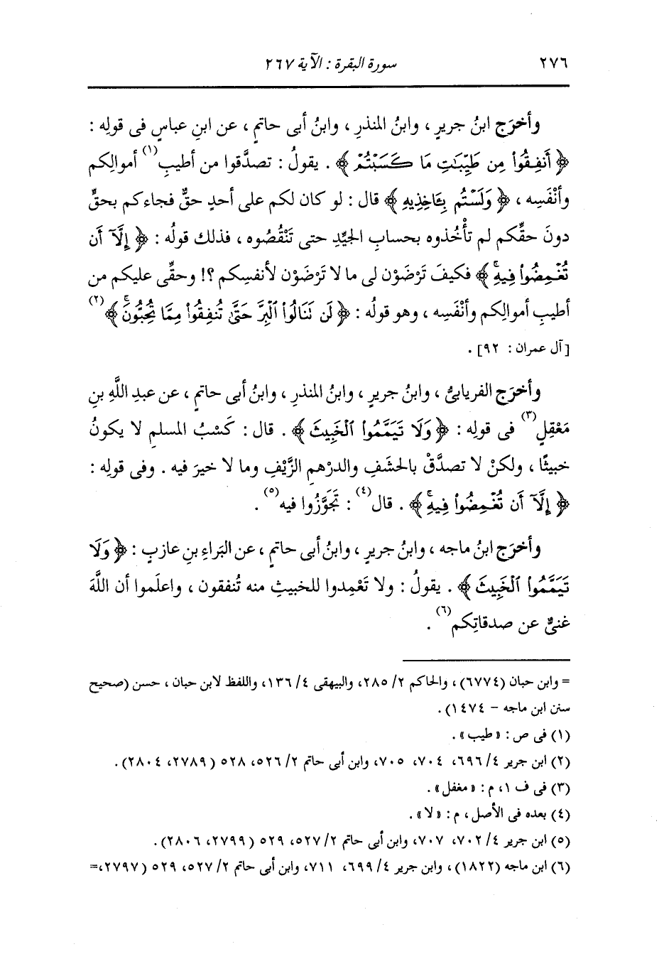 وأخرج سفيان بن عيينة والفريابي عن مجاهد قال : كانوا يتصدقون بالحشف وشرار التمر فنهوا عن ذلك وأمروا أن يتصدقوا بطيب قال : وفي ذلك نزلت {ولا تيمموا الخبيث منه تنفقون}.